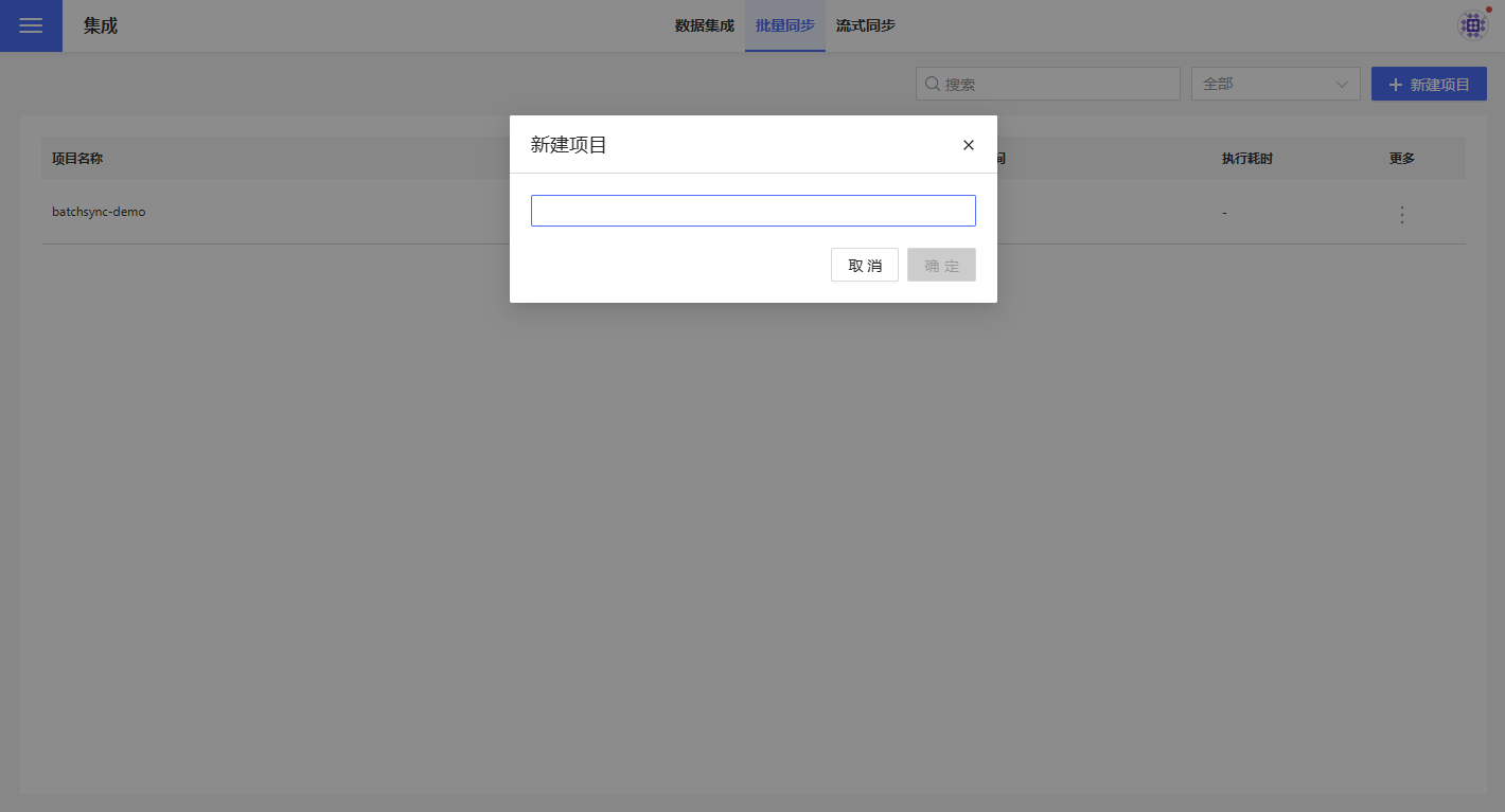 在数据集成->批量同步页面中,点击右上角的新建项目,创批量同步项目。