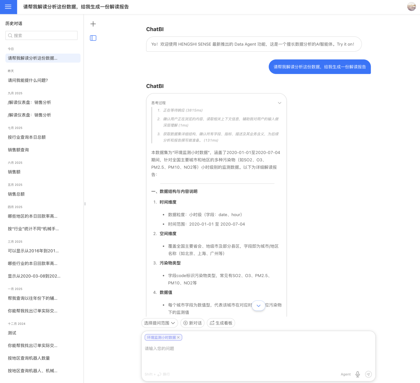 在Agent模式下,不仅仅是只进行问数回答,还支持对所选数据进行分析解读,如下图回答。