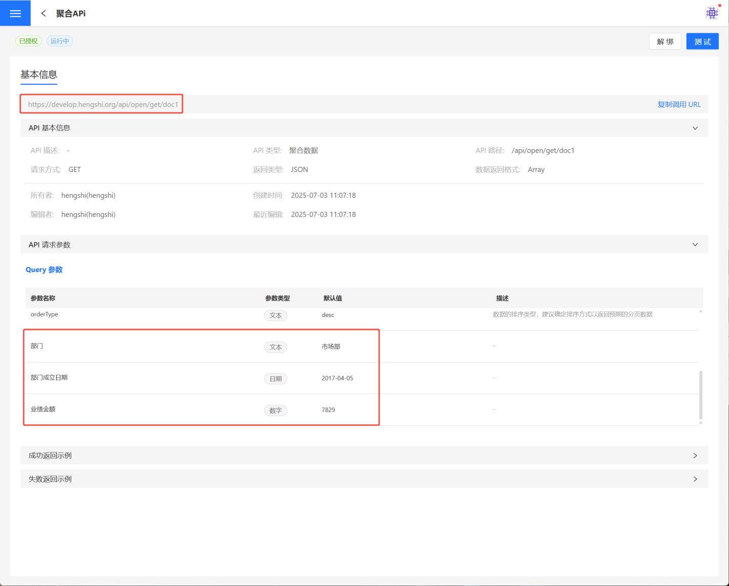 对设置请求参数的 API 进行测试,可以将参数全部勾选查看返回结果。