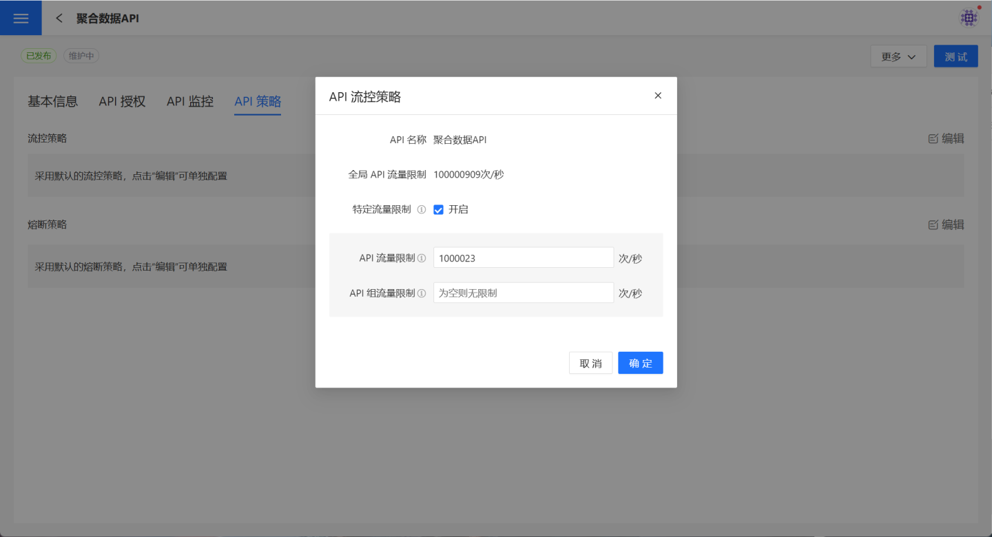流控策略是从全局角度对 API 流量进行限制。 每个 API 可以单独控制自己 API 流量。 详细说明请参考API 流控 。