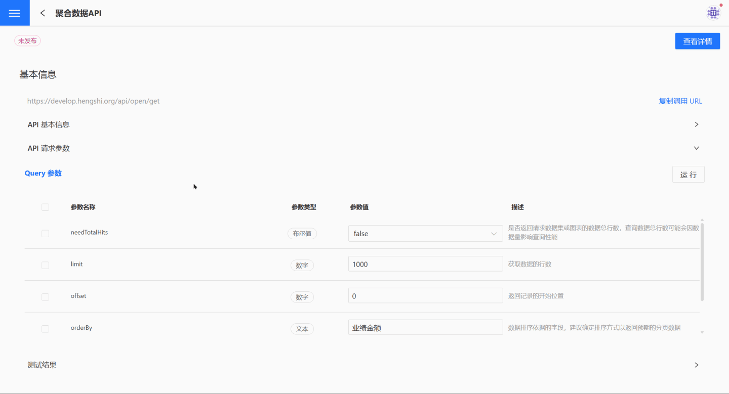 明细数据 API 的测试和发布与聚合数据 API 的相同,请参考聚合数据 API 的测试示例进行测试。