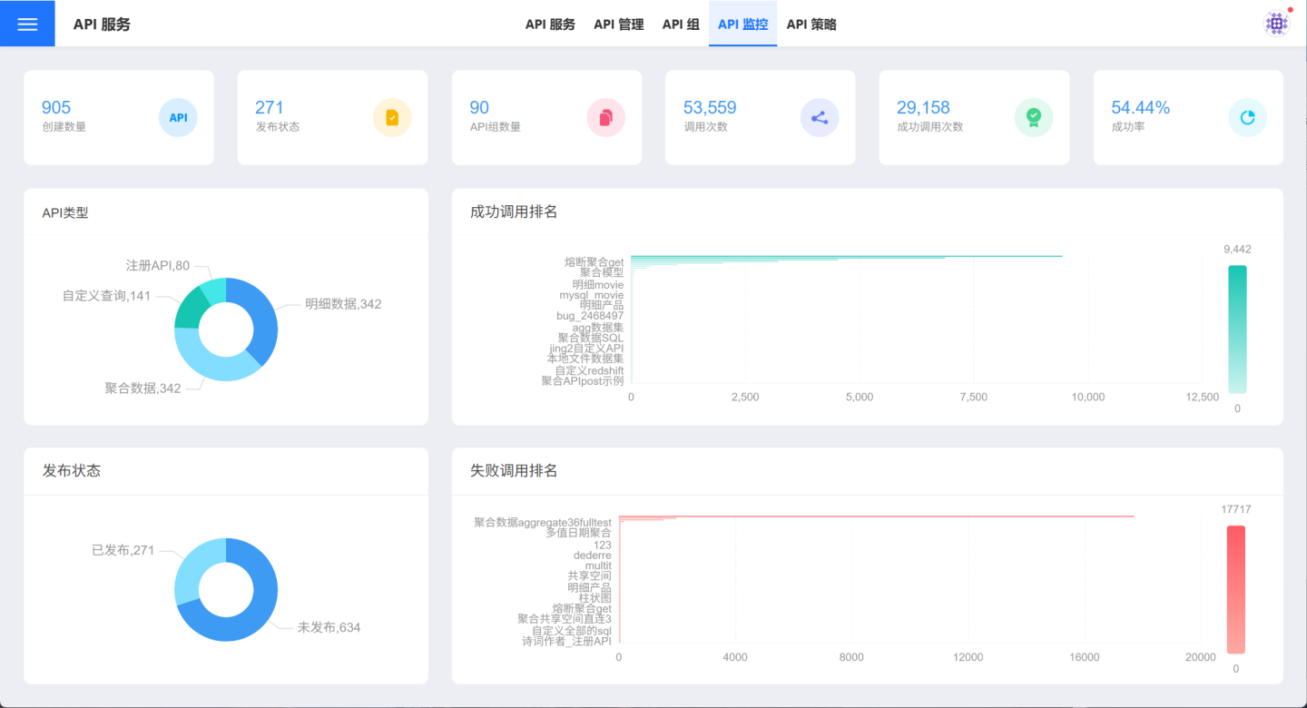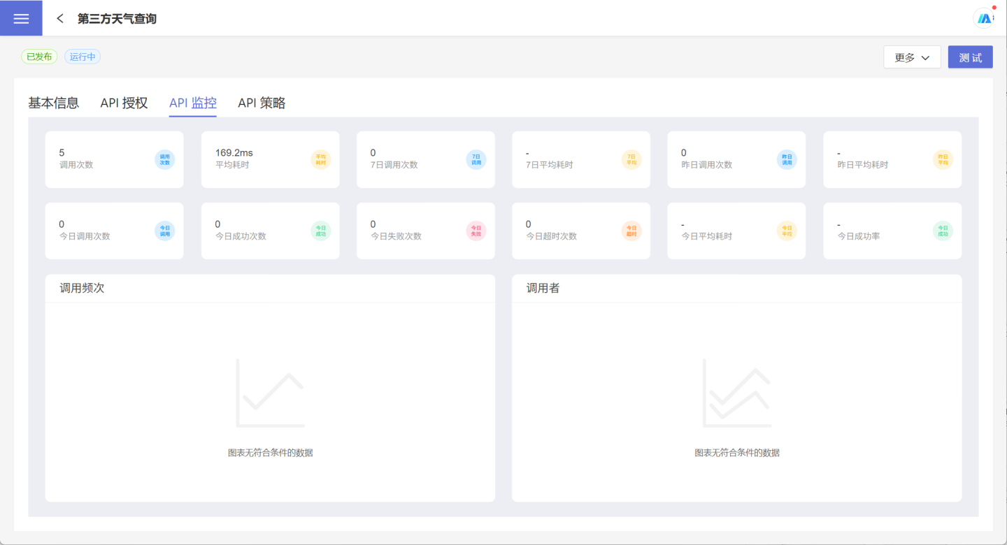 用户还可以通过API 监控Tab 标签页,查看所有 API 提供服务的整体情况。