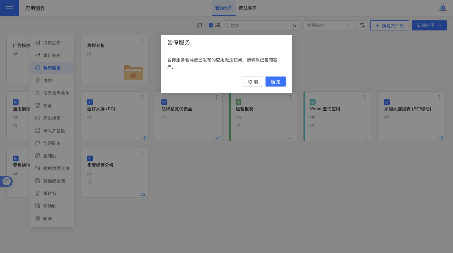 当系统进行升级维护或故障处理,例如底层数据进行迁移时,部分已发布的应用会受到影响从而报错,此时是不希望用户访问到相关的仪表盘的。