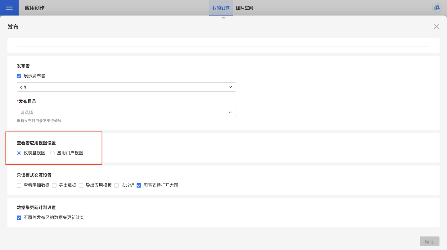 查看者应用视图设置决定了用户进入已发布应用时的默认展示方式。系统提供两种视图模式供选择: