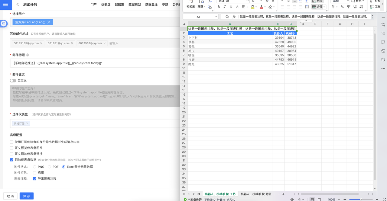 6.2 版本新增导出图表注释功能。订阅任务勾选导出 Excel 数据时支持导出图表注释,确保数据在传递过程中的完整性。