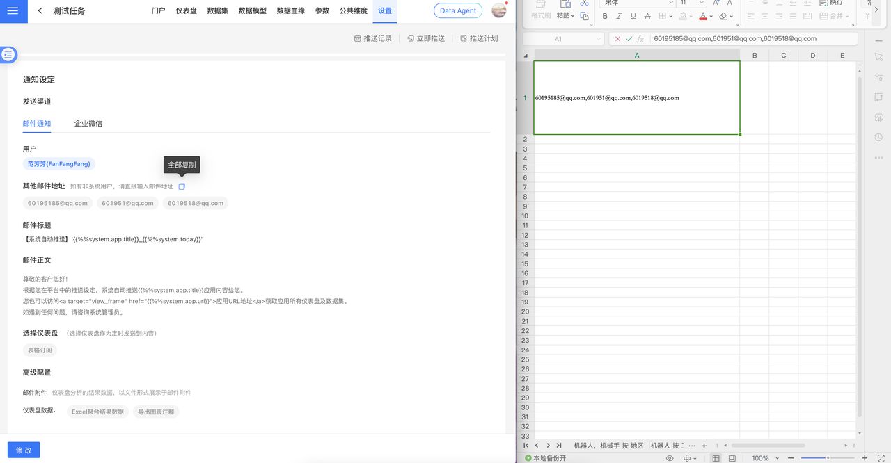 • 系统内用户收到邮件推送的内容,数据权限同应用 -> 设置 -> 数据权限。