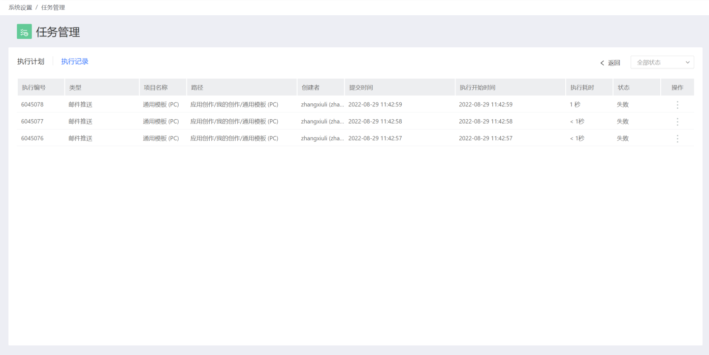 在上述邮件推送详情页的右上角选择“推送记录”可查看该应用的所有推送历史以及推送日志。