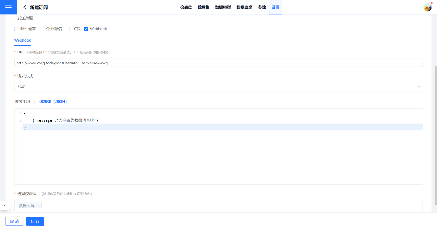 - 选择仪表盘:选择订阅消息中发送的仪表盘信息。