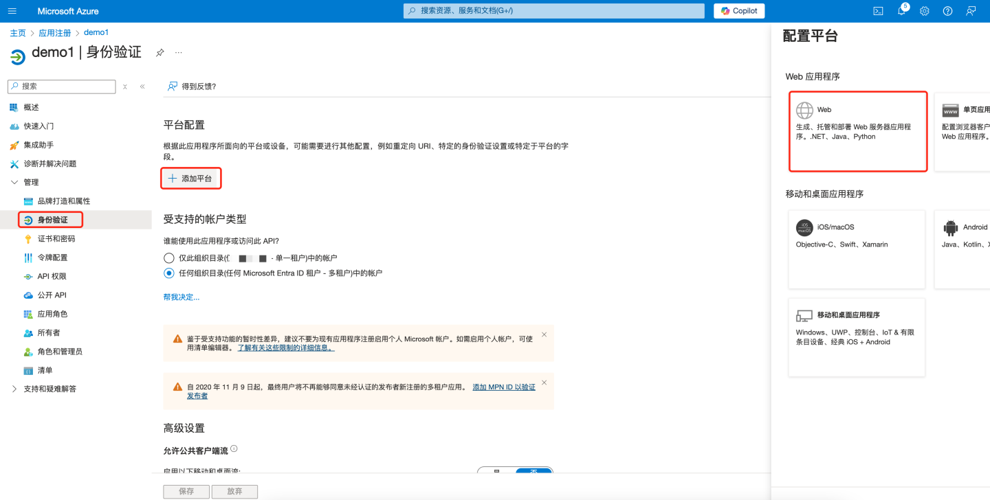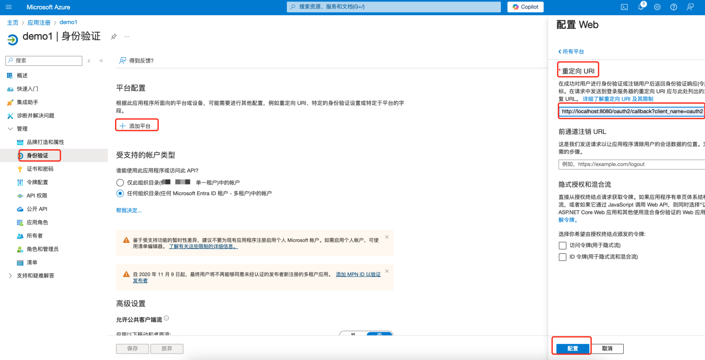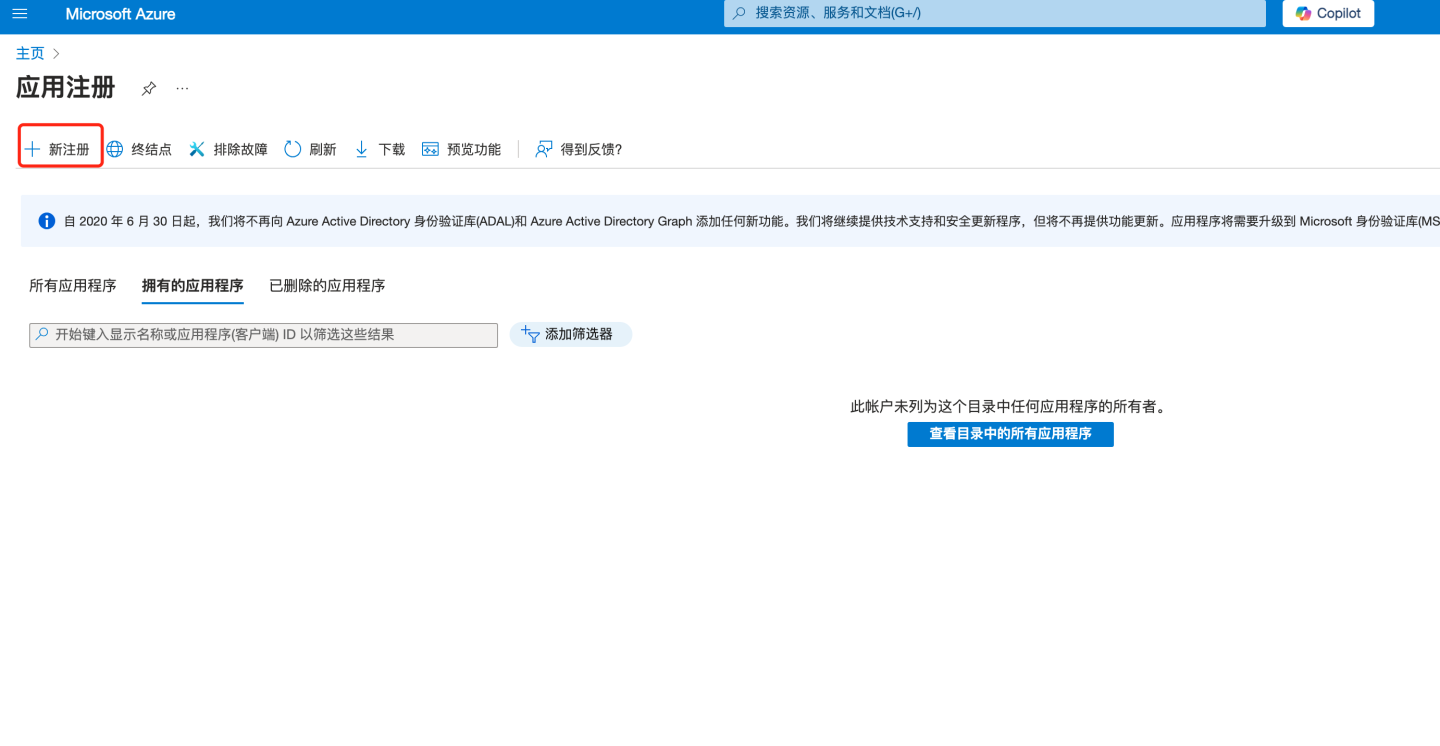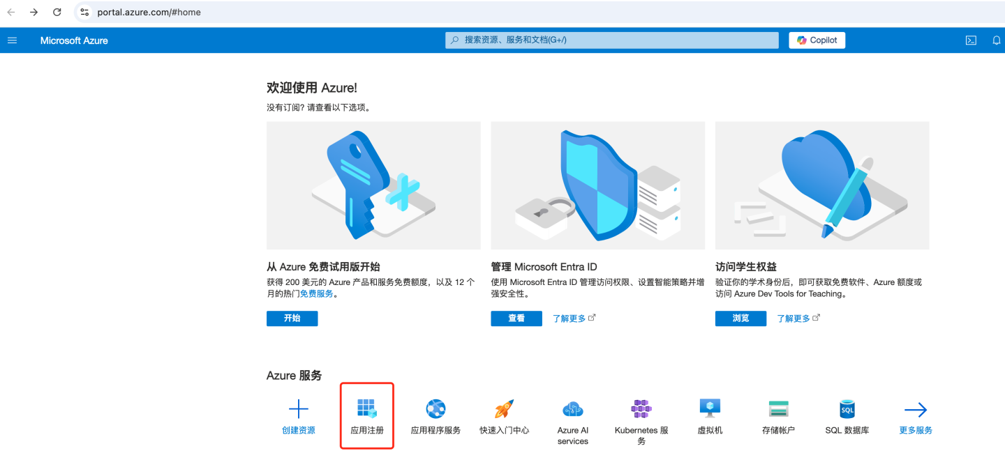 通过 OAuth2 认证方式与 Azure Oauth server 集成。 Azure 通过下述步骤获取配置信息: