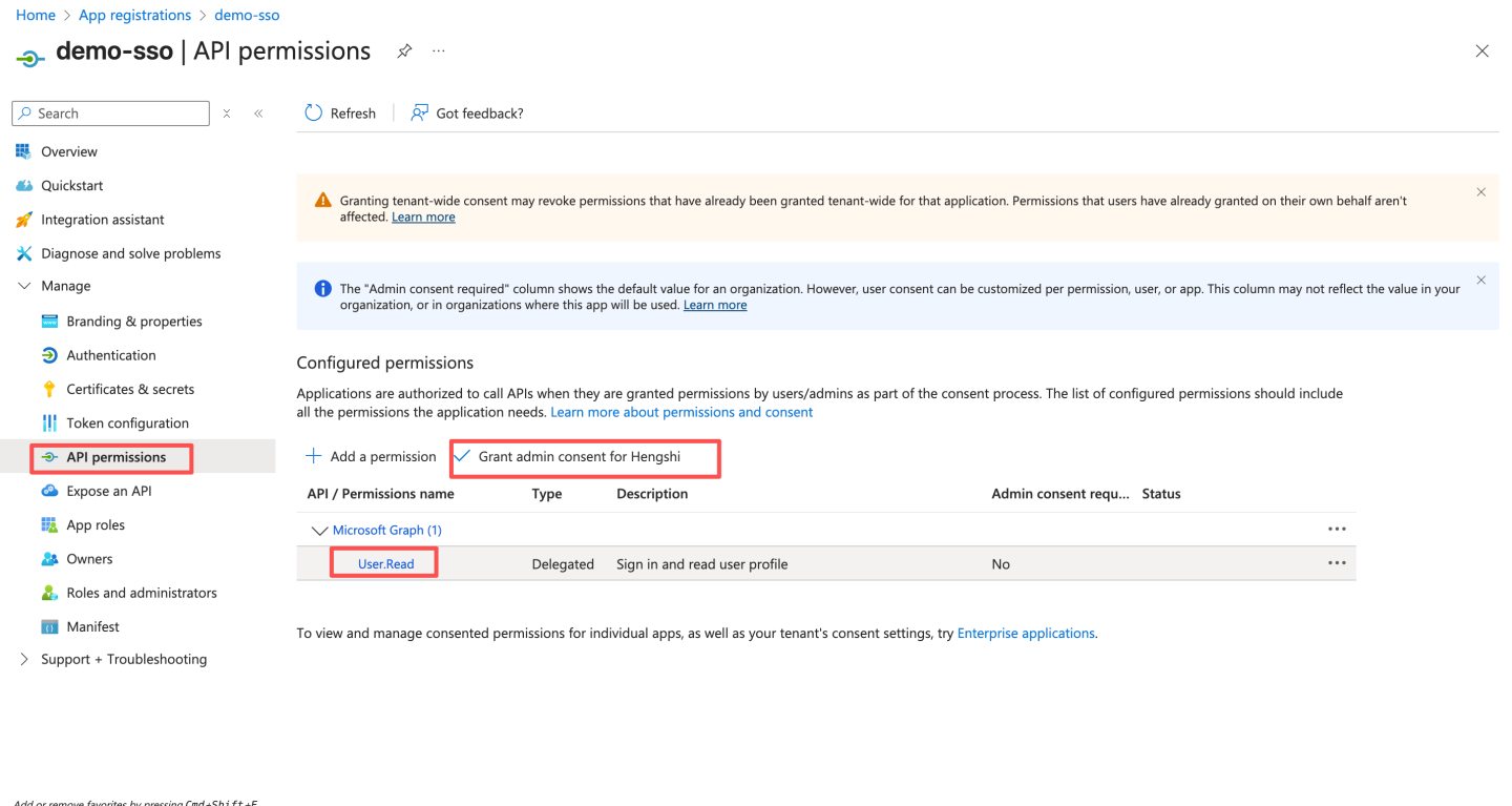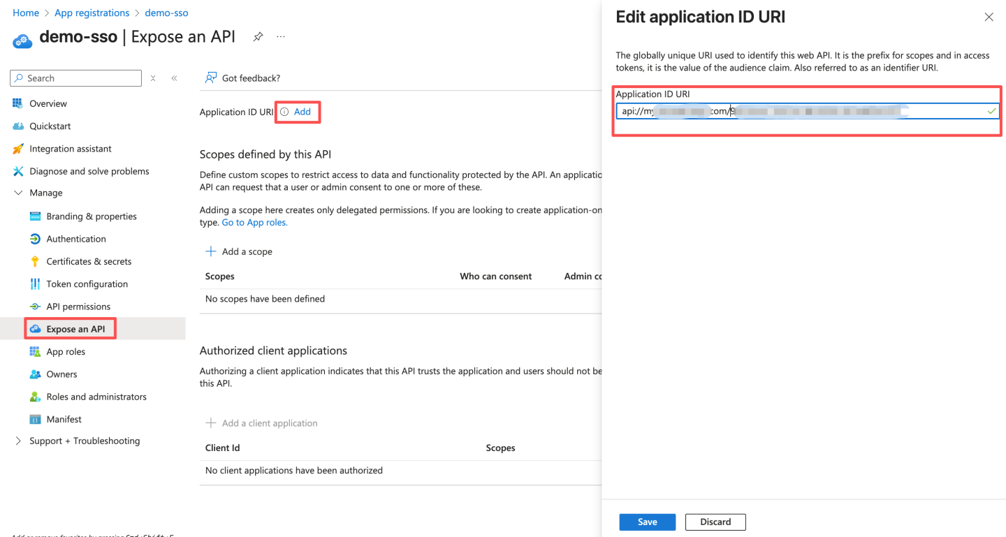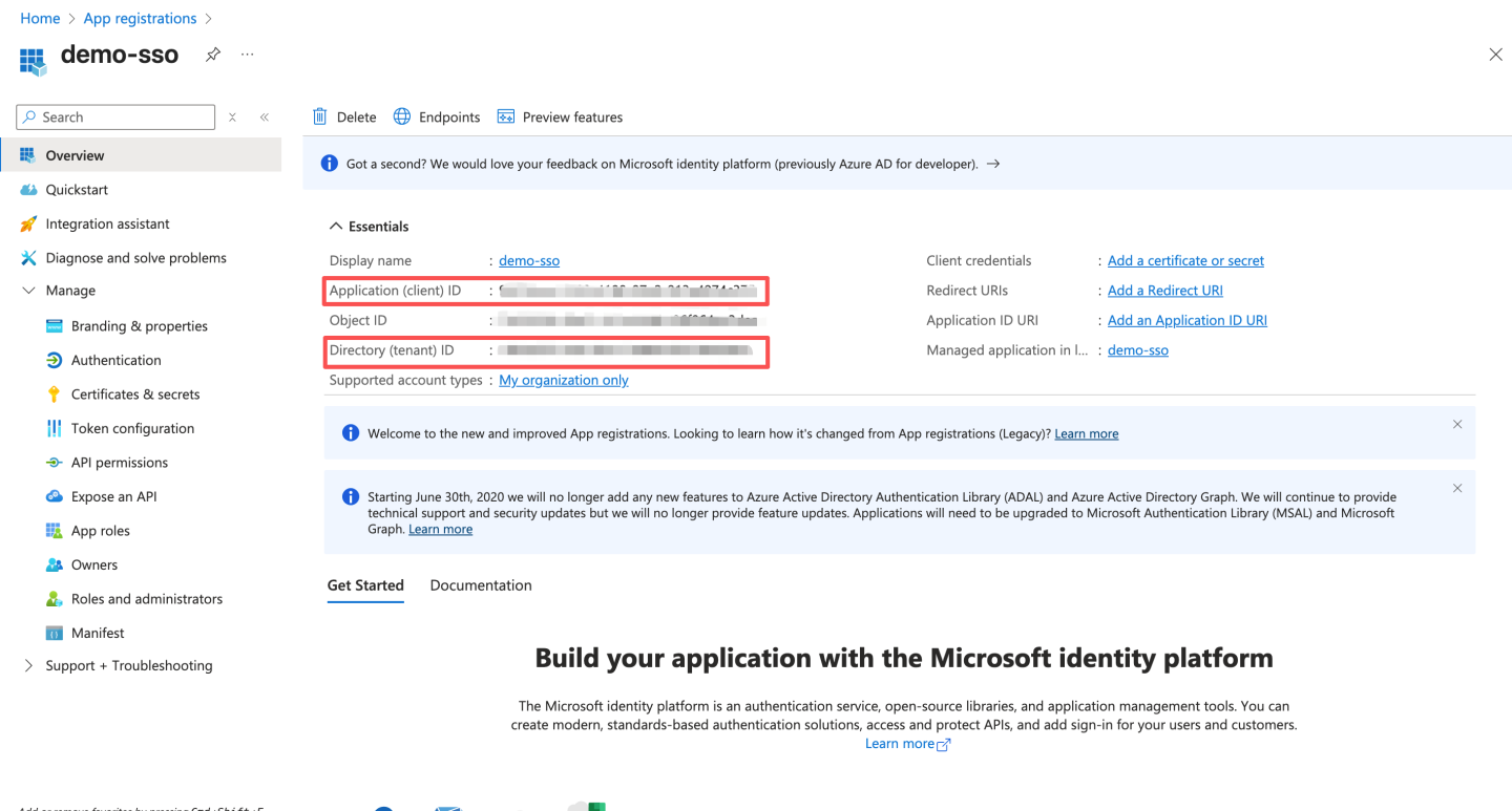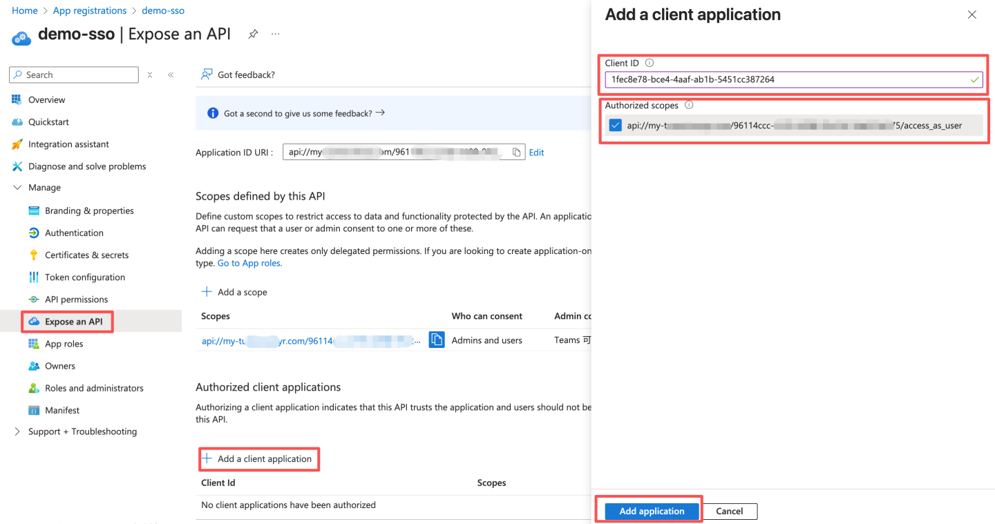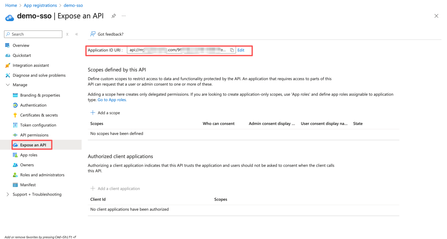 通过 OAuth2 认证方式与 Azure Oauth server 集成。 Azure 通过下述步骤获取配置信息: