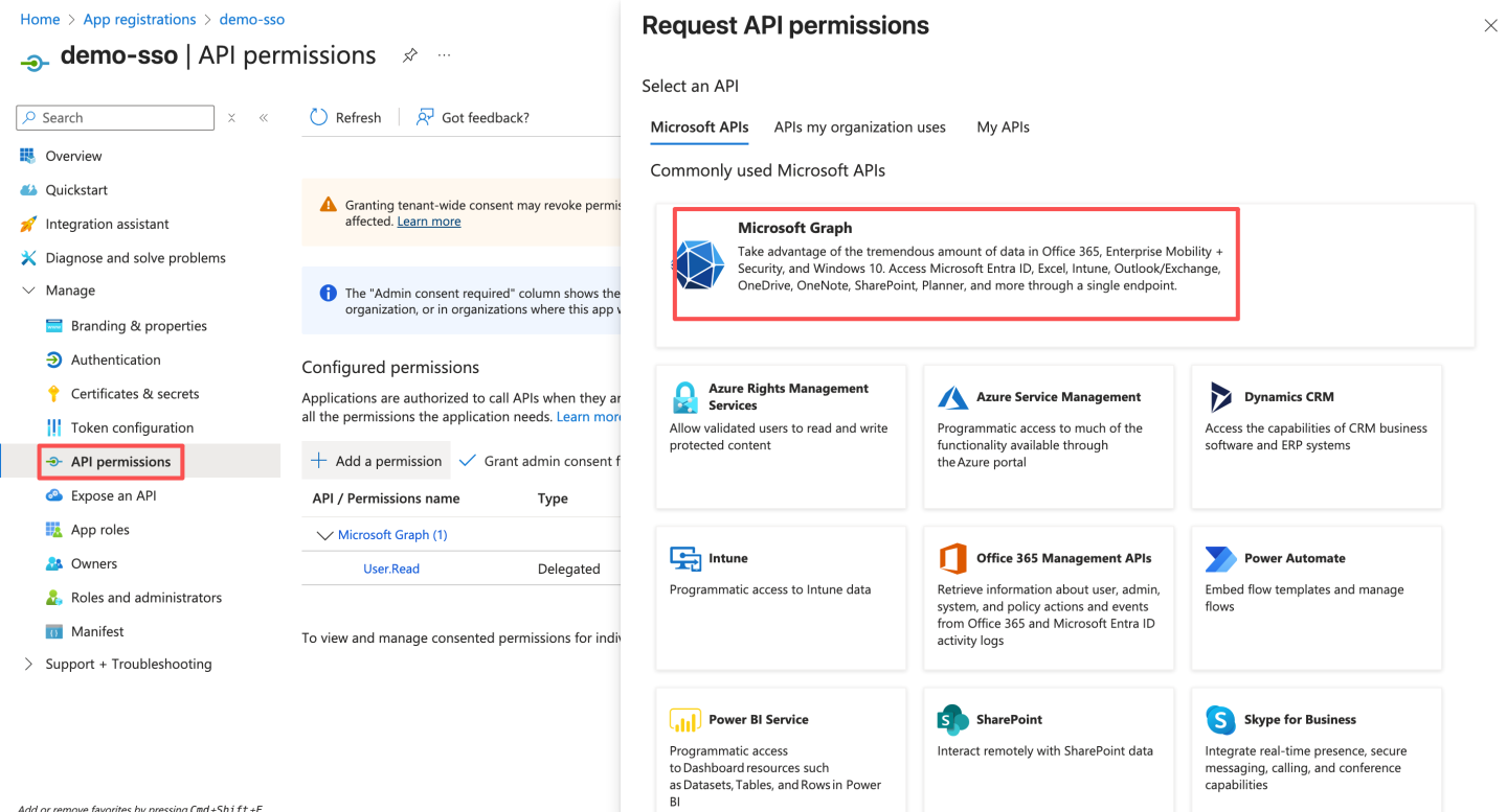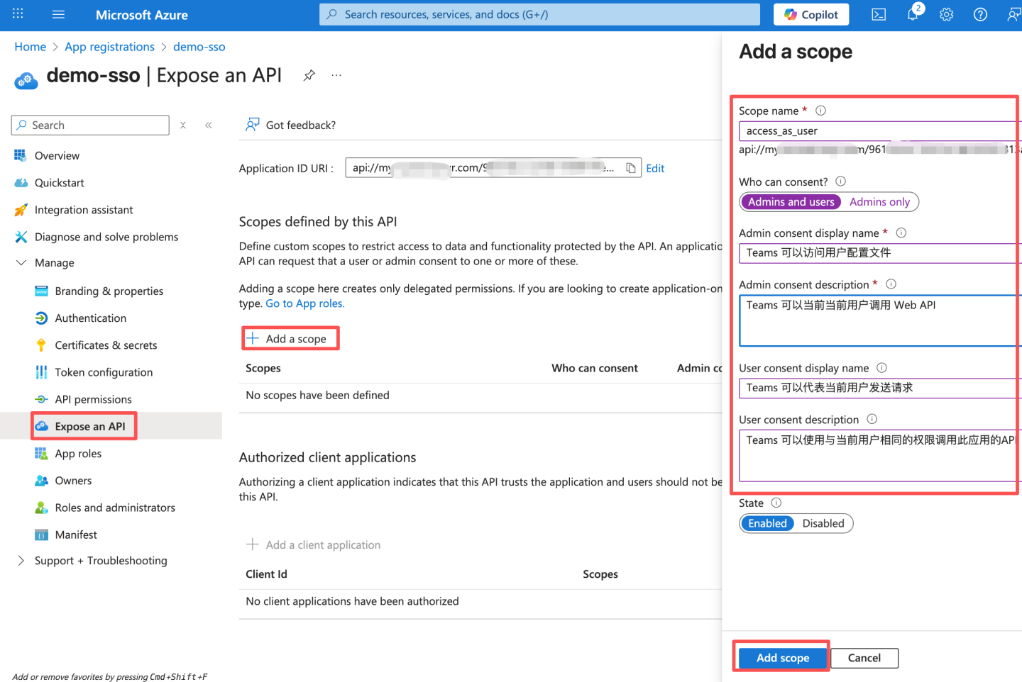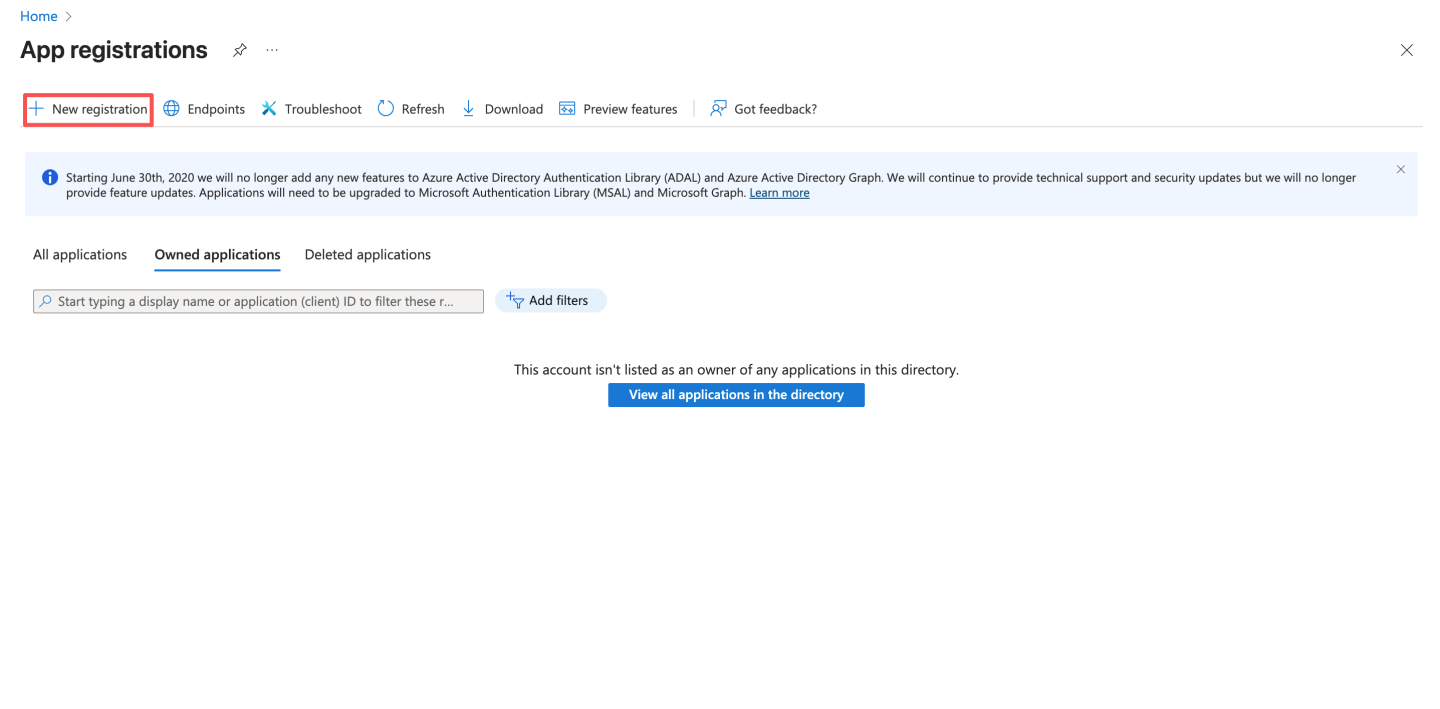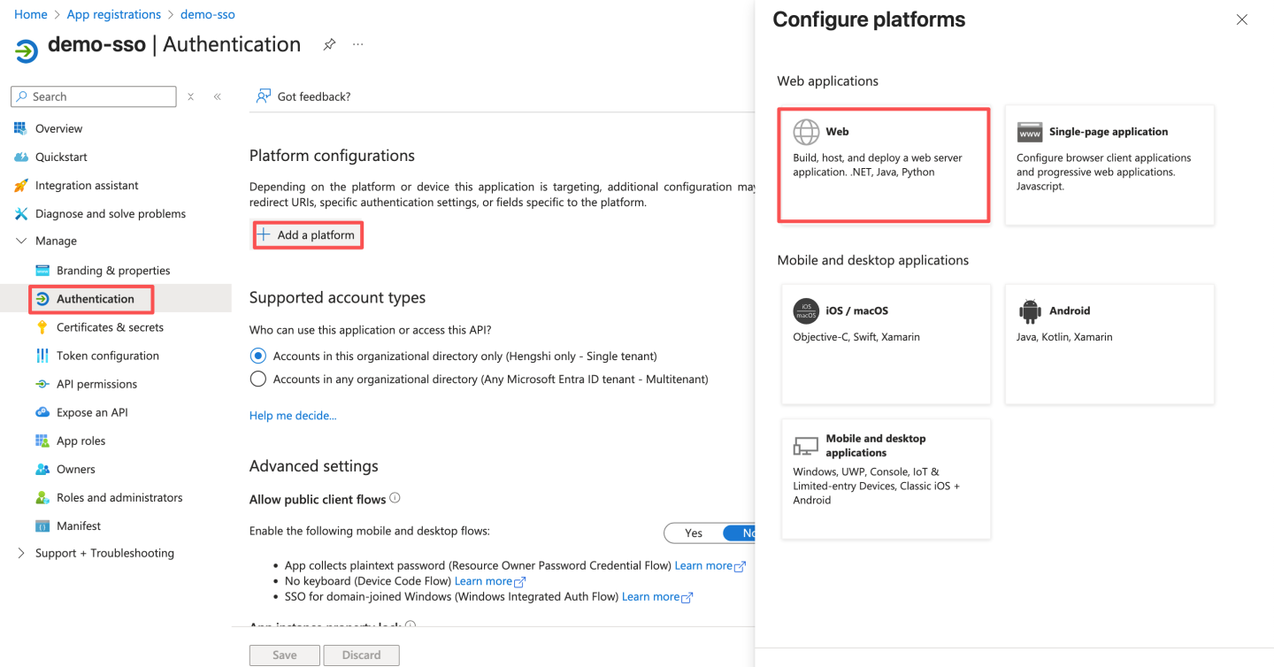 通过 OAuth2 认证方式与 Azure Oauth server 集成。 Azure 通过下述步骤获取配置信息: