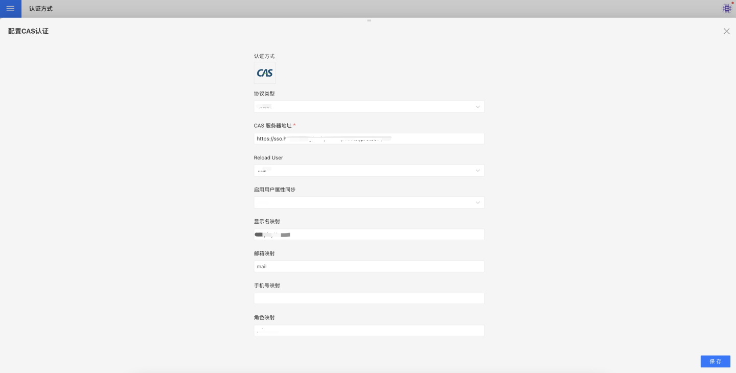 CAS 通用配置包括显示名映射、邮箱映射、手机号映射、角色映射、组映射、组织架构映射、企业 ID 映射、企业名称映射、平台方 ID、启用 SSO exp 会话有效期同步、会话有效期映射。 通用配置字段的说明和使用请参考通用配置章节。