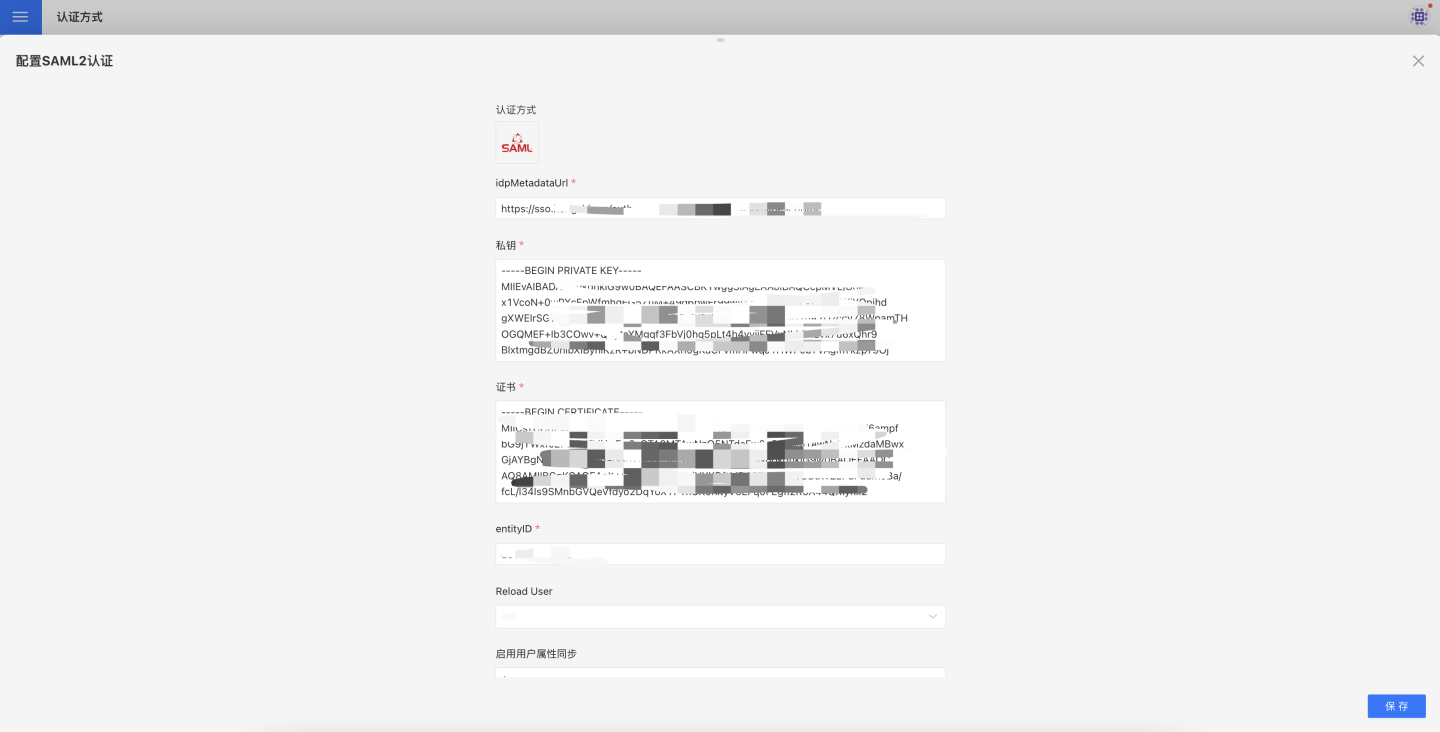 SAML2 认证相关配置有: