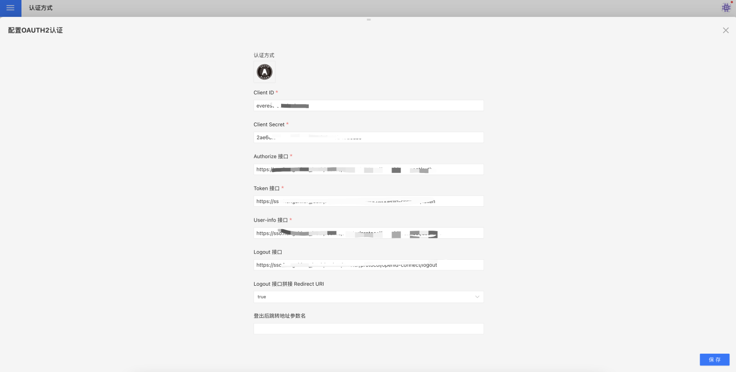 至此,通过OAuth2认证方式集成所需的必要信息已经配置完成。如需要更详细的配置可以参考下述资料