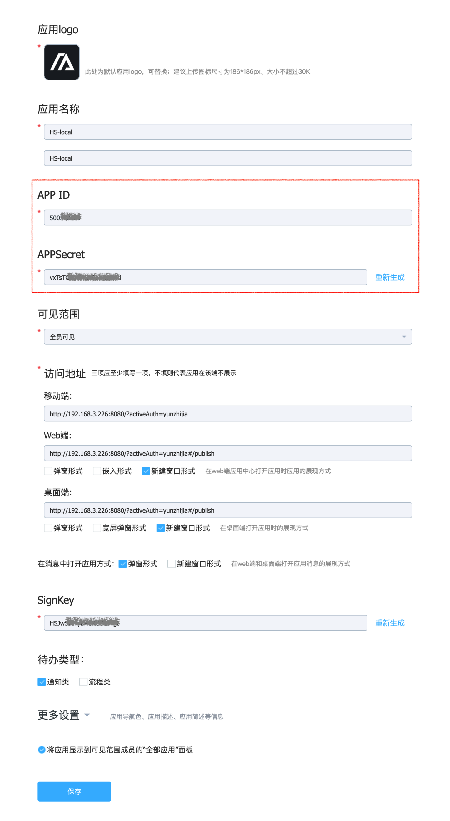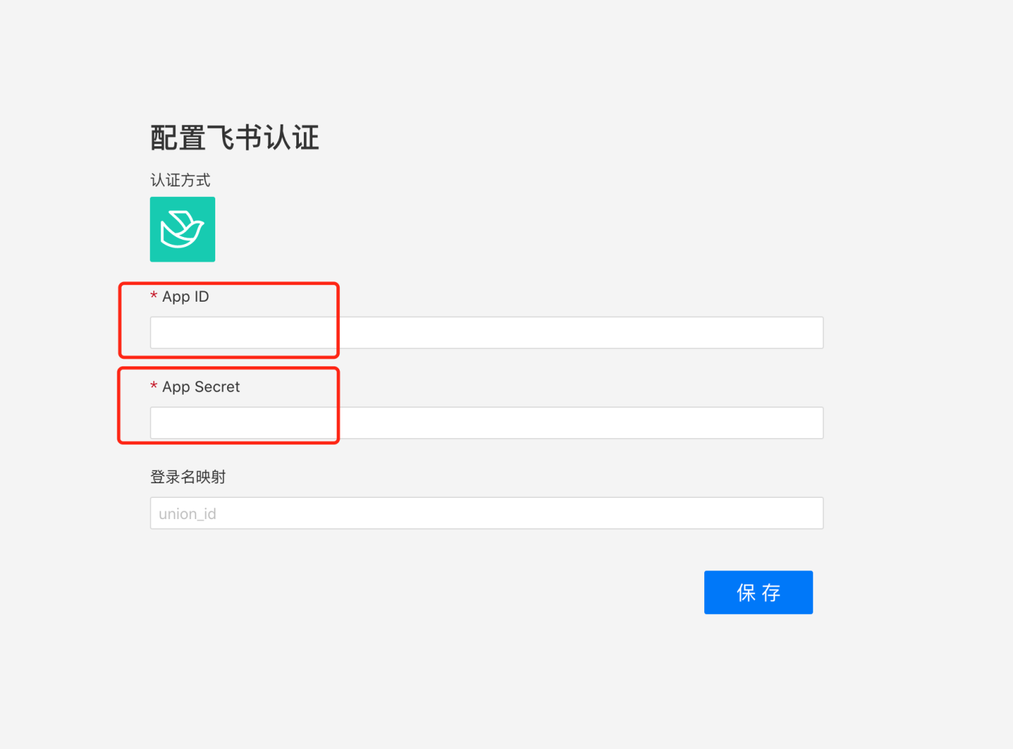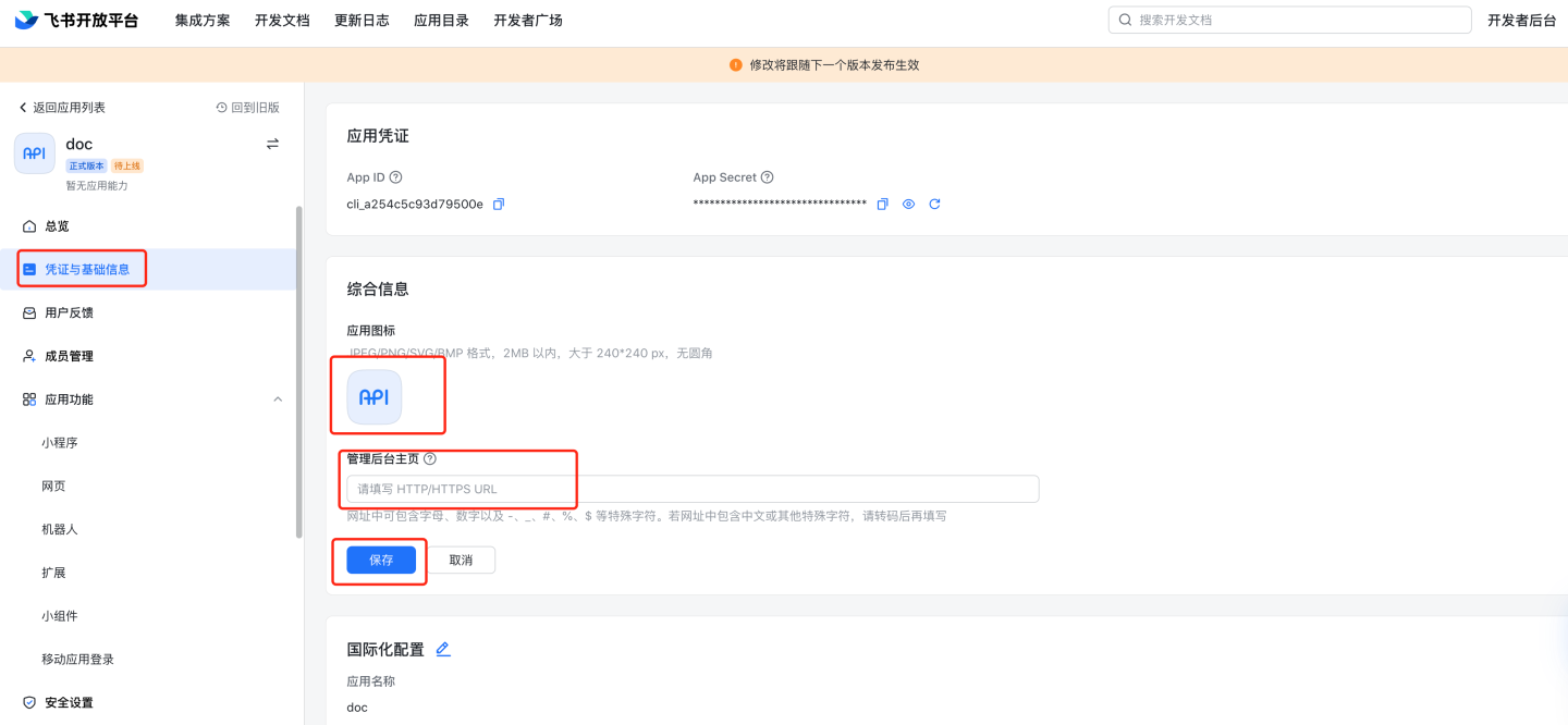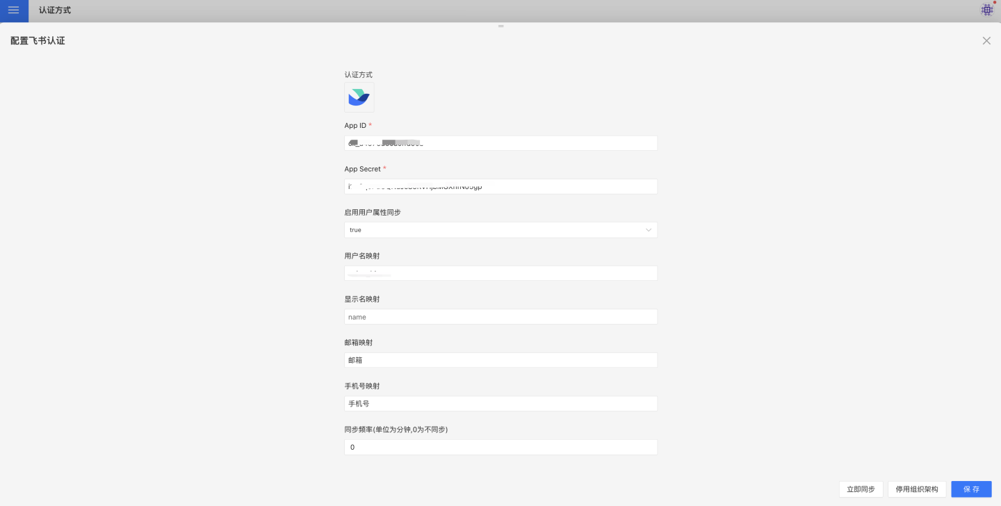 在系统中配置飞书自建应用的 App ID 和 App Secret.