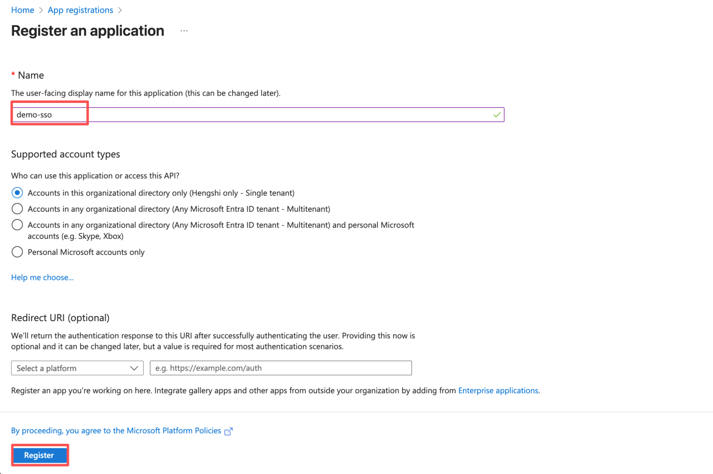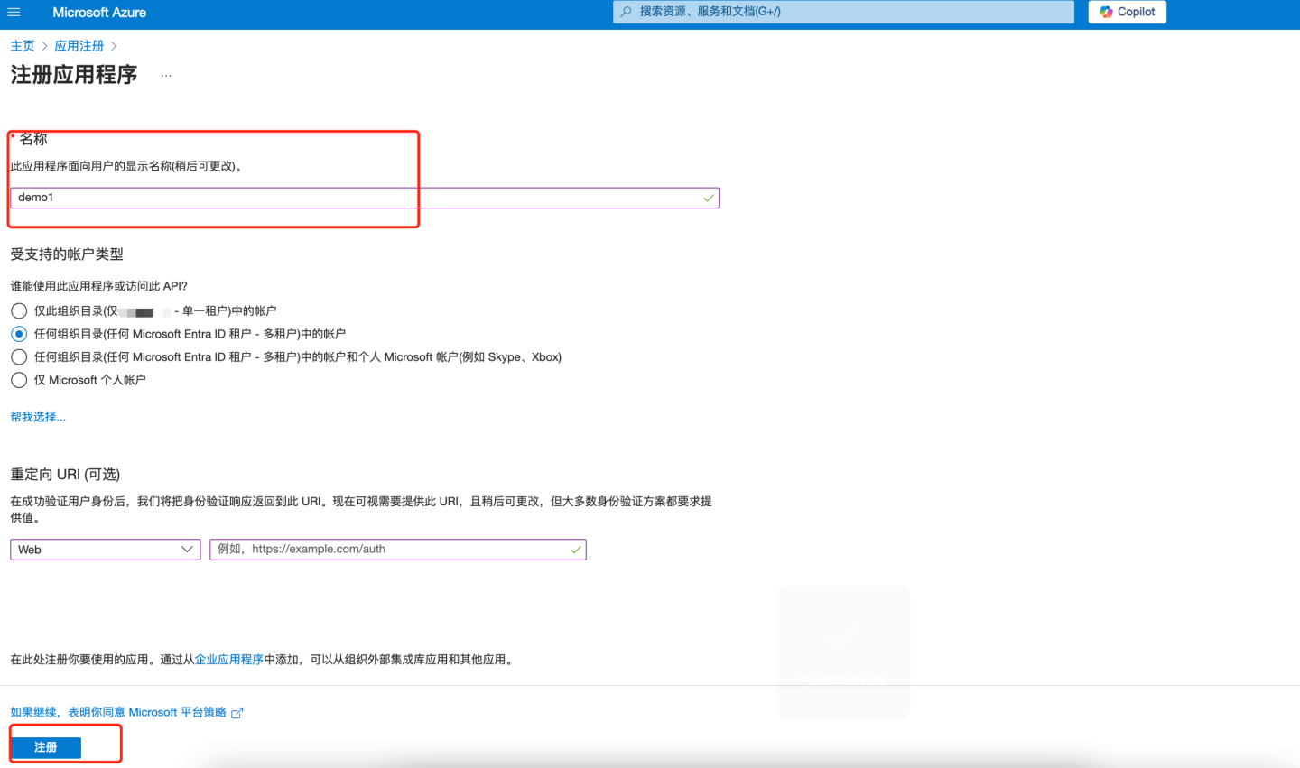 - 输入名称等信息,点击注册。
