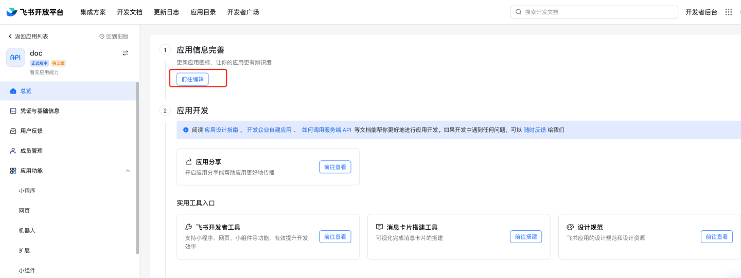 https://bc0nlvsmah.feishu.cn/admin/appCenter/manage免登进入具体的应用 如果在凭证与基础信息的综合信息中,填写了管理后台主页地址,则可以在飞书管理后台免登进入应用。