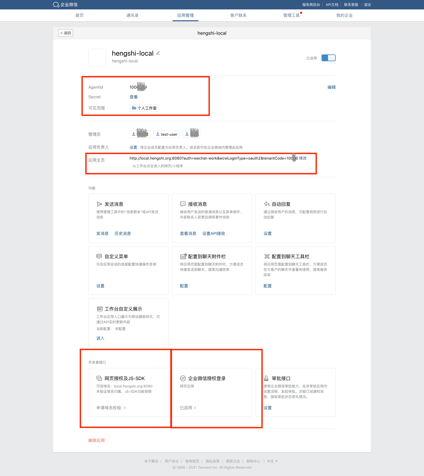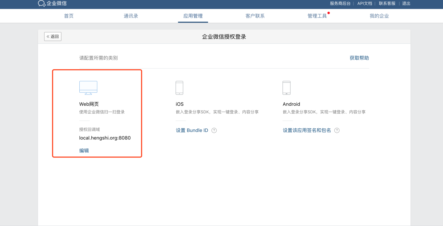 - 在企业微信自建应用管理页面配置 HENGSHI 的嵌入地址