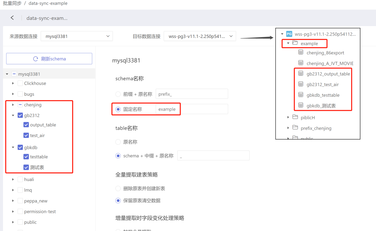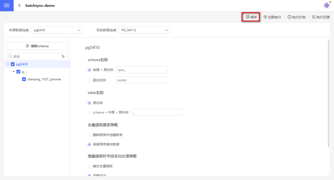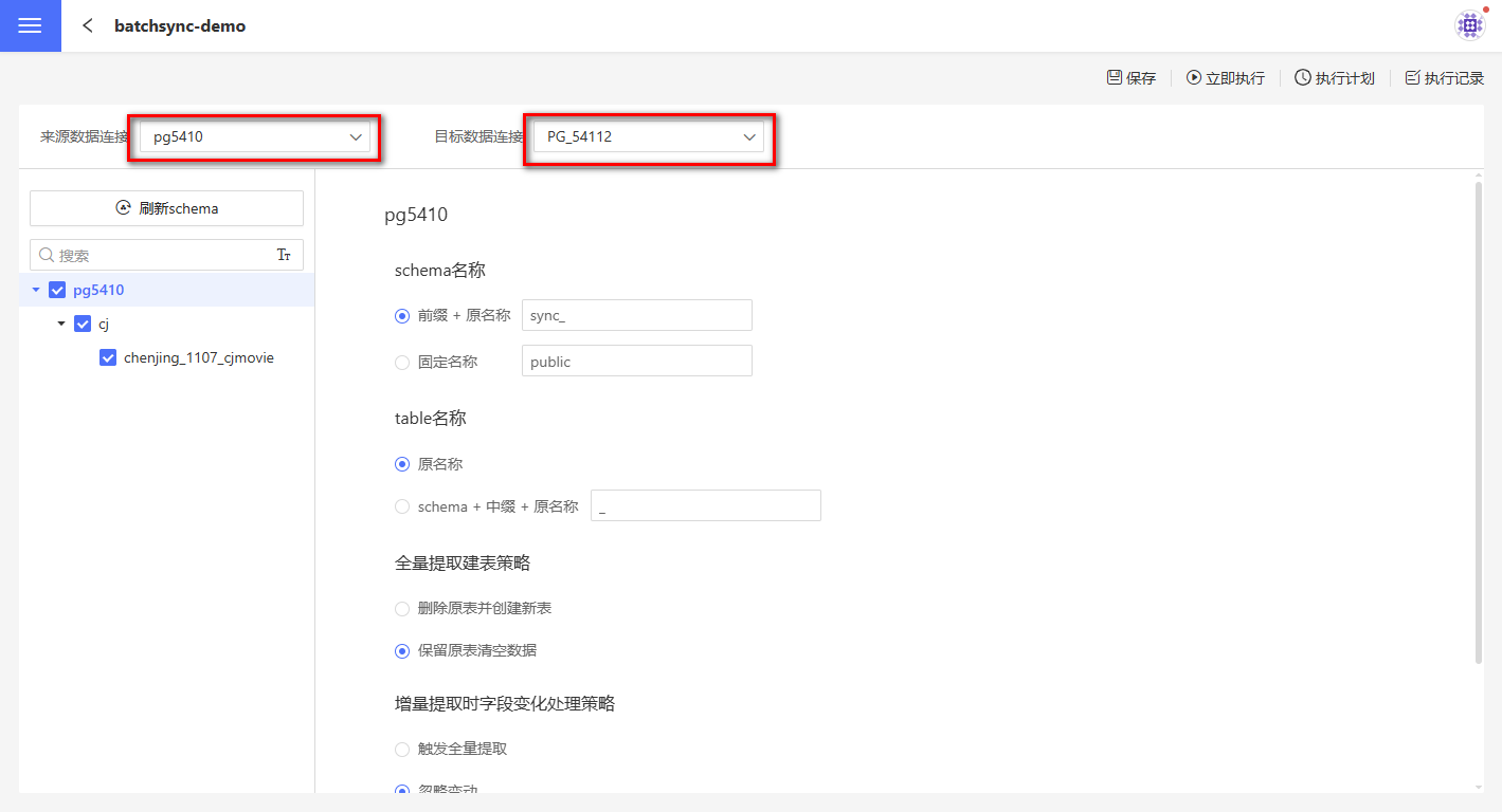 批量同步支持对连接、schema、表分别设置同步策略。