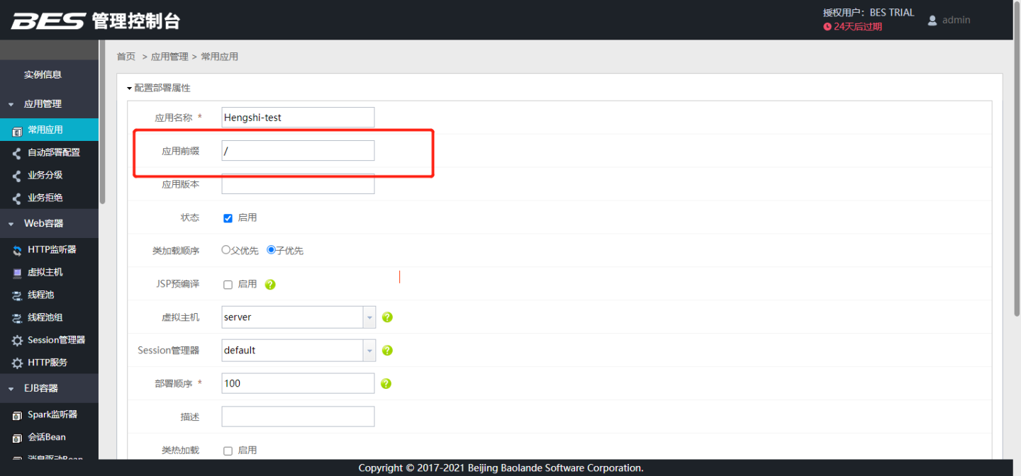 部署如需特定应用前缀,请修改 部署前准备>配置 BESwebserver 衡石内部使用组件配置信息 此步骤 CONTEXT_PATH 参数 与设置的应用前缀保持一致
