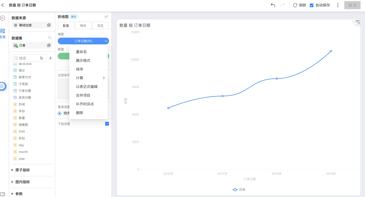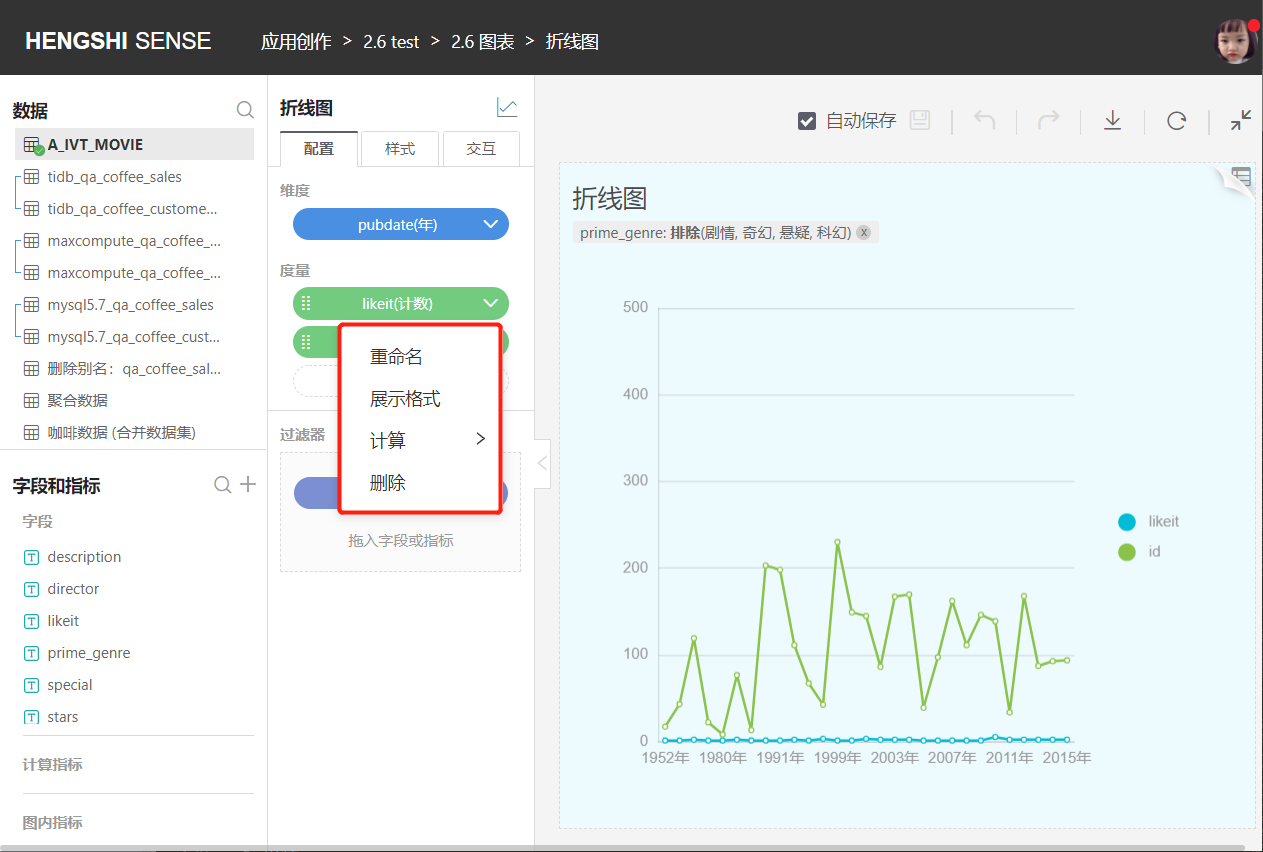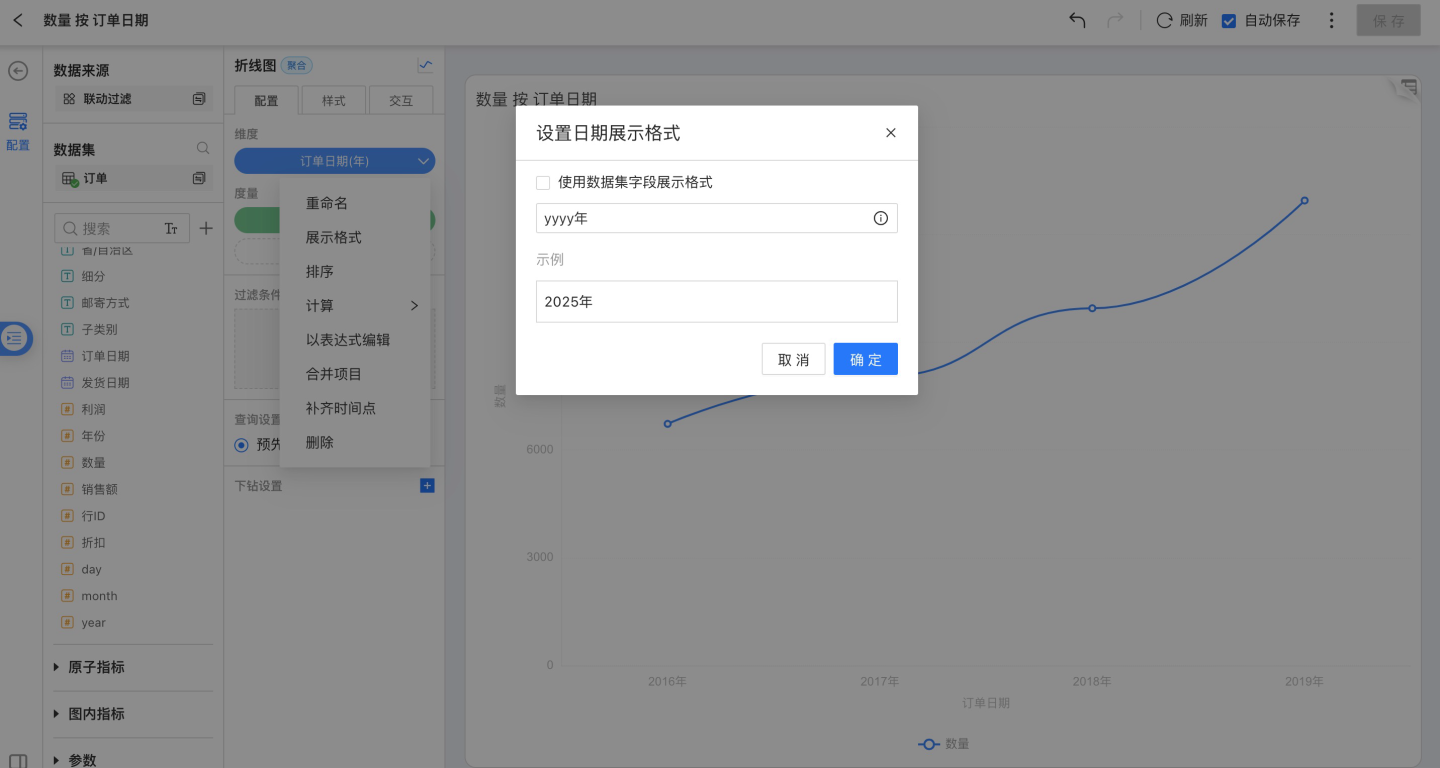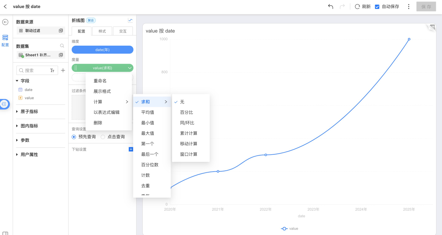 - 重命名: 修改度量名称,使图表中的内容更加贴近业务场景。
