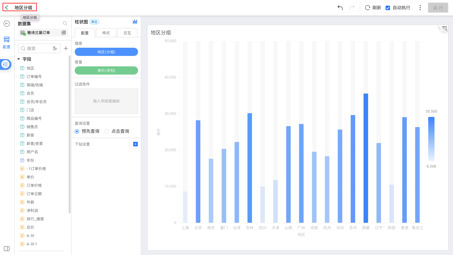 图表库创建后,分析人员可以在应用创作中使用图表库图表,详细操作请参考导入图表库图表。