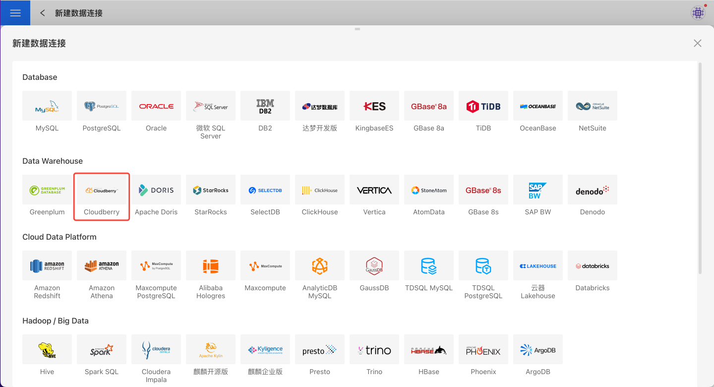 请参照如下步骤连接 Cloudberry 数据源。