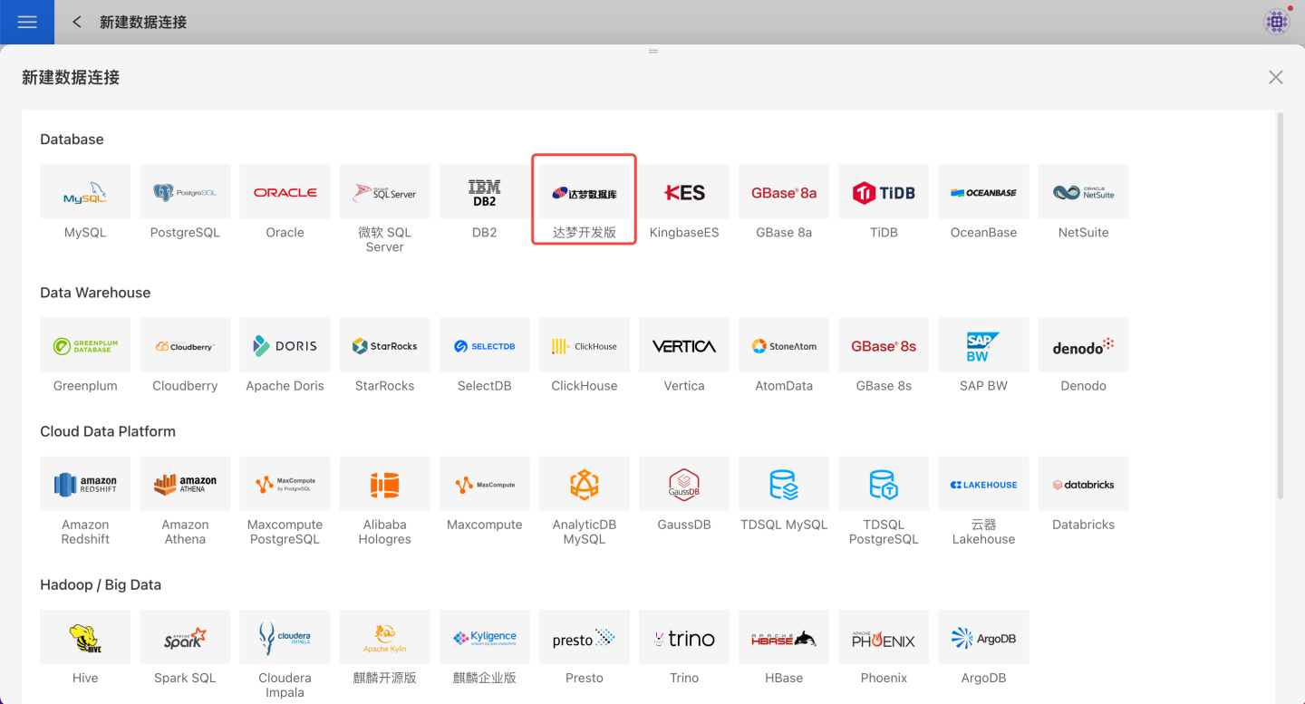请参照如下步骤连接 达梦数据库。