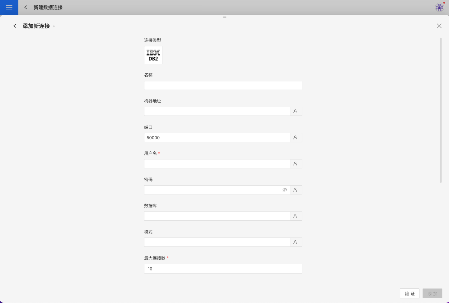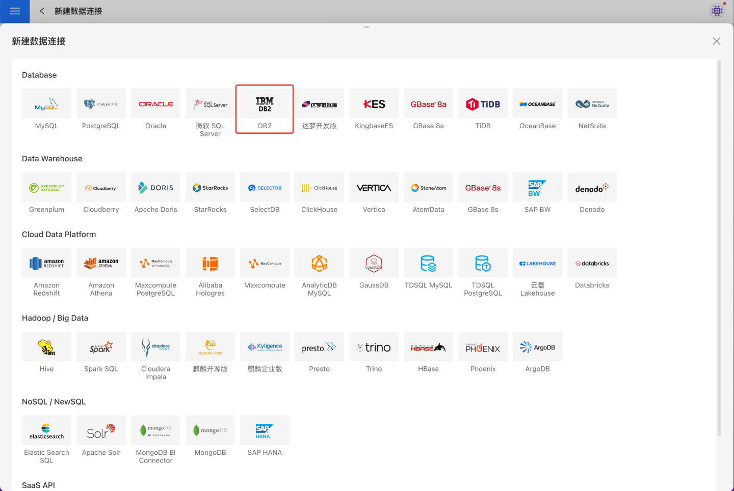 请参照如下步骤连接 DB2数据源。