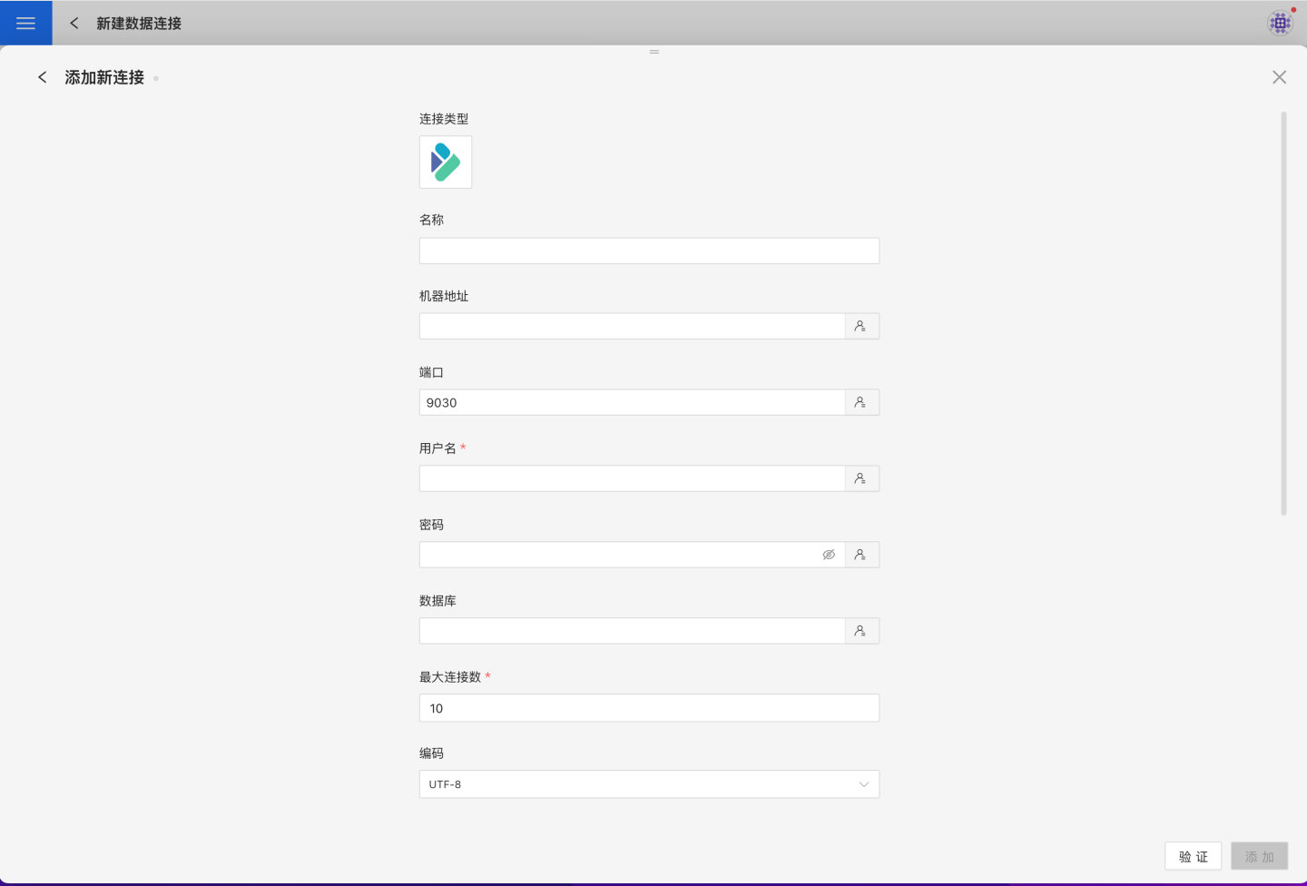 验证按钮,获取验证结果(验证 HENGSHI SENSE 和设置的数据连接的连通性,在未验证通过时不可添加)。验证通过后