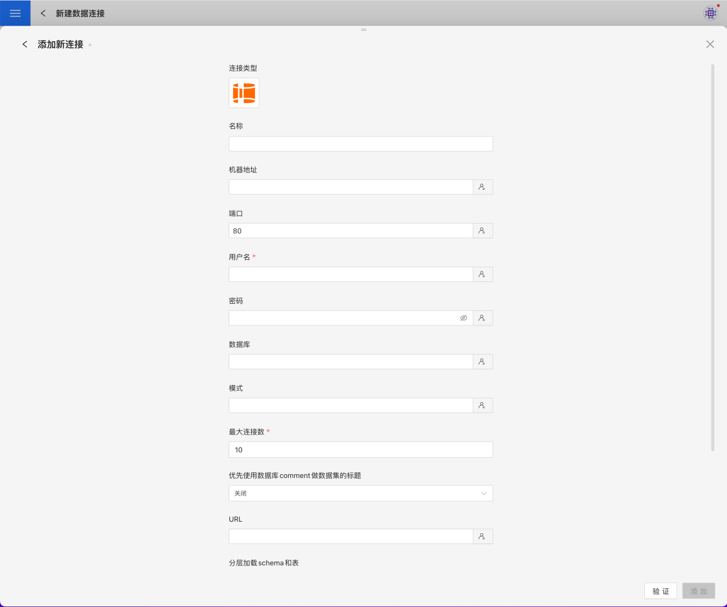 | 分层加载 schema 和表 | 默认为 关闭。开启时分层加载 schema 和表,连接过程只加载 schema,需要点击schema才会加载schame下的table |