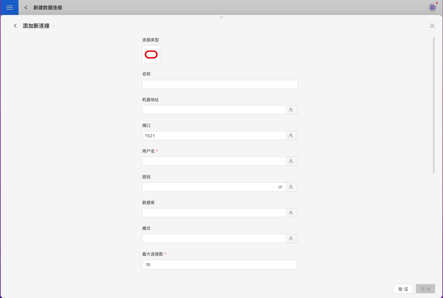 验证按钮,获取验证结果(验证 HENGSHI SENSE 和设置的数据连接的连通性,在未验证通过时不可添加)。验证通过后