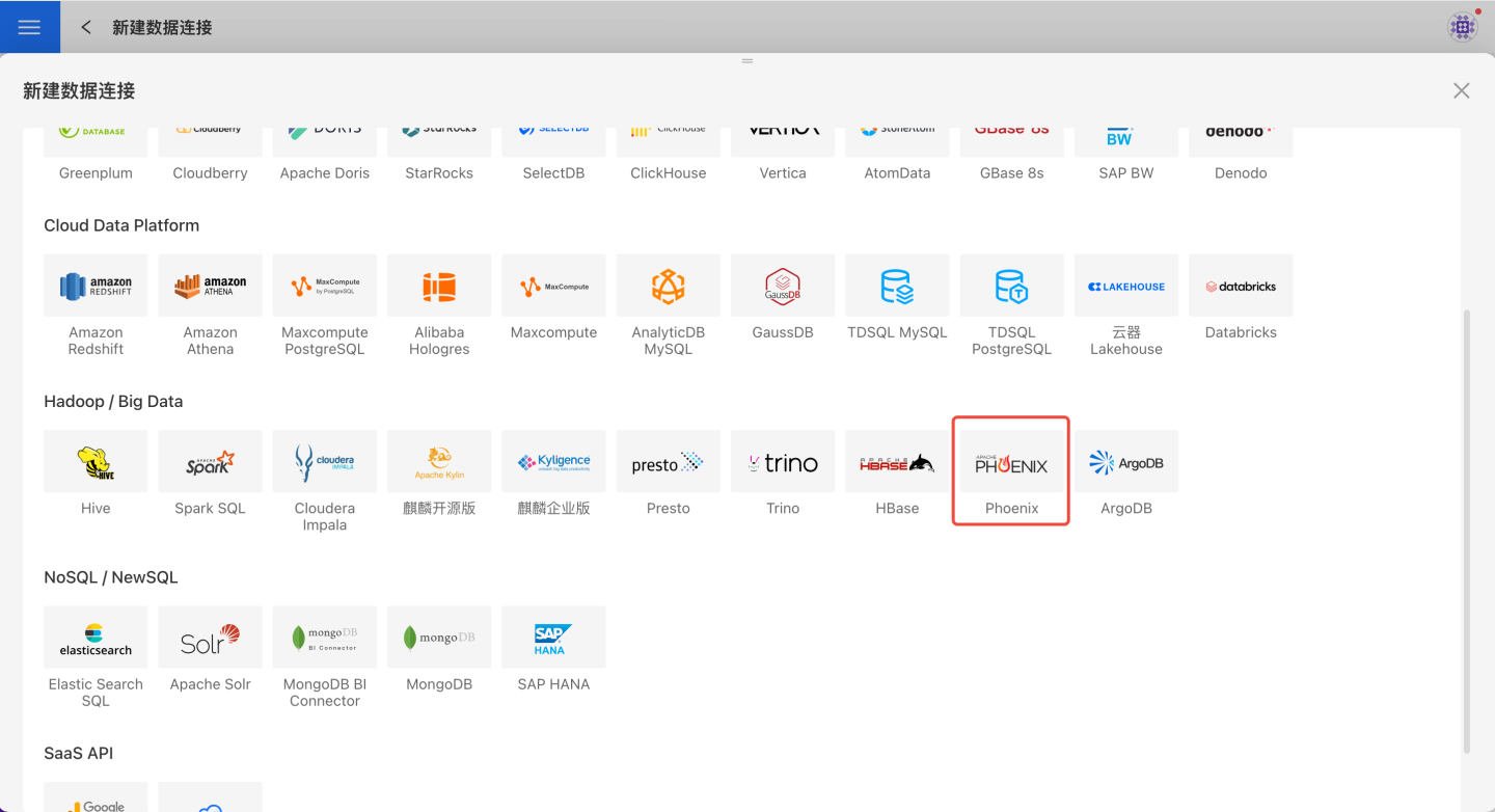 请参照如下步骤连接 Phoenix 数据源。
