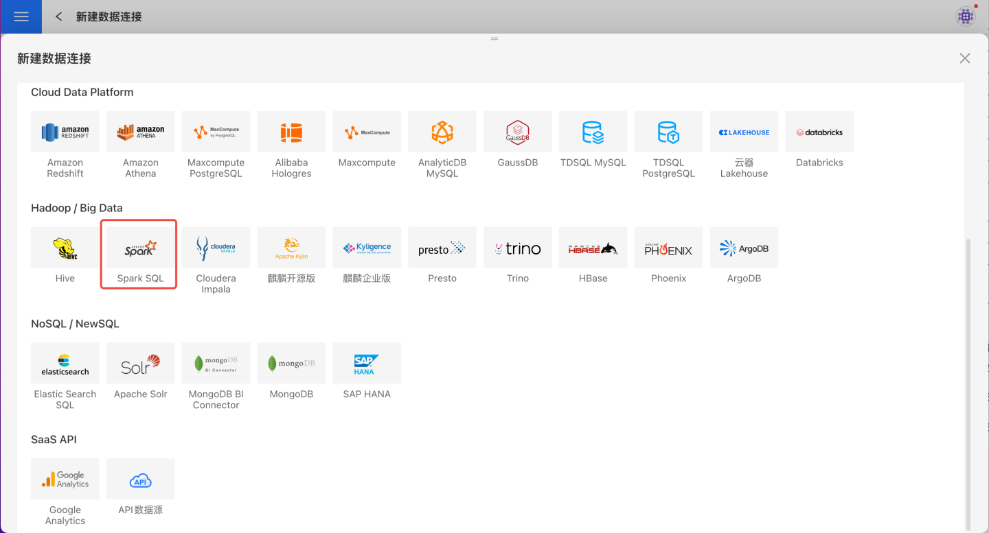 请参照如下步骤连接 Spark SQL 数据源。