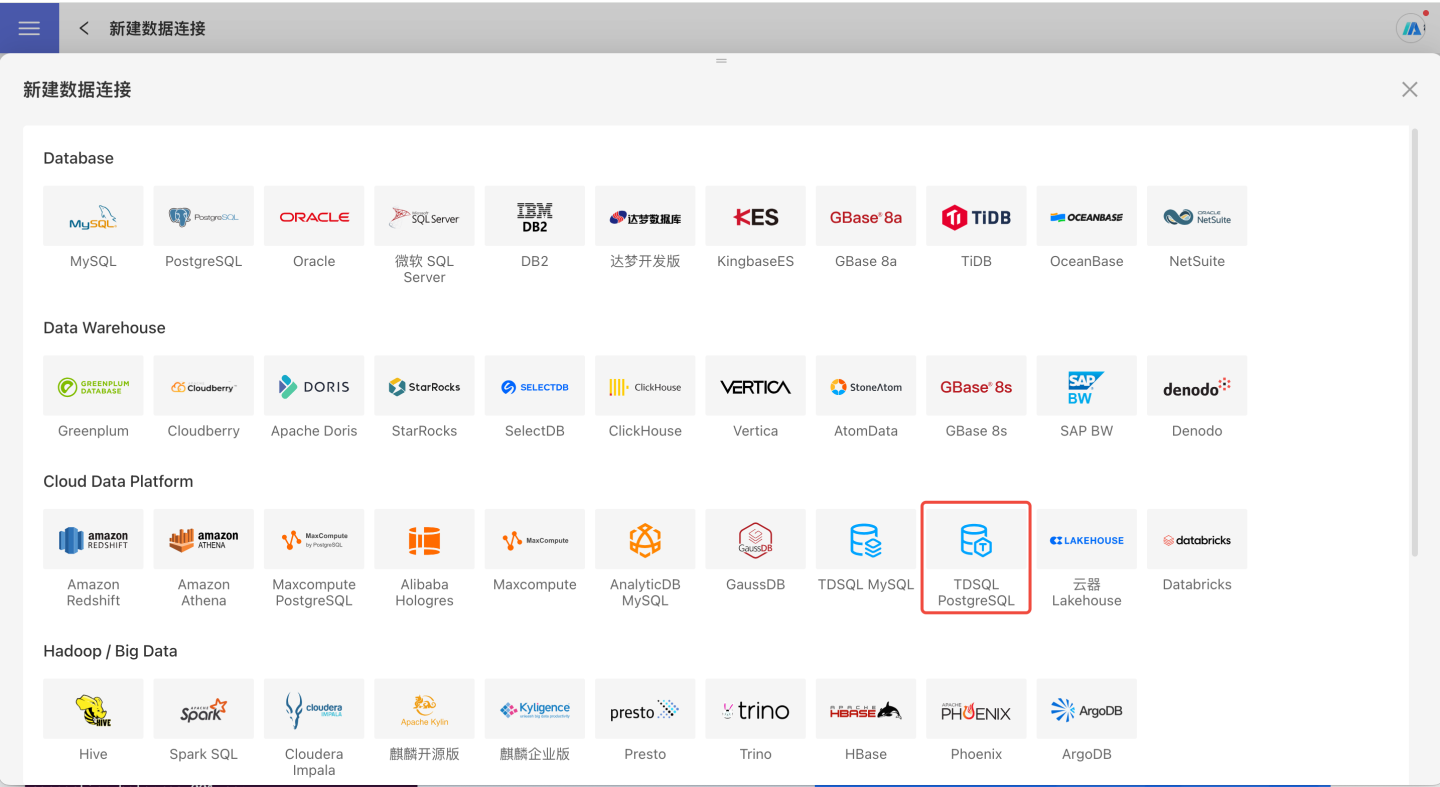 请参照如下步骤连接 TDSQL PostgreSQL 数据源。