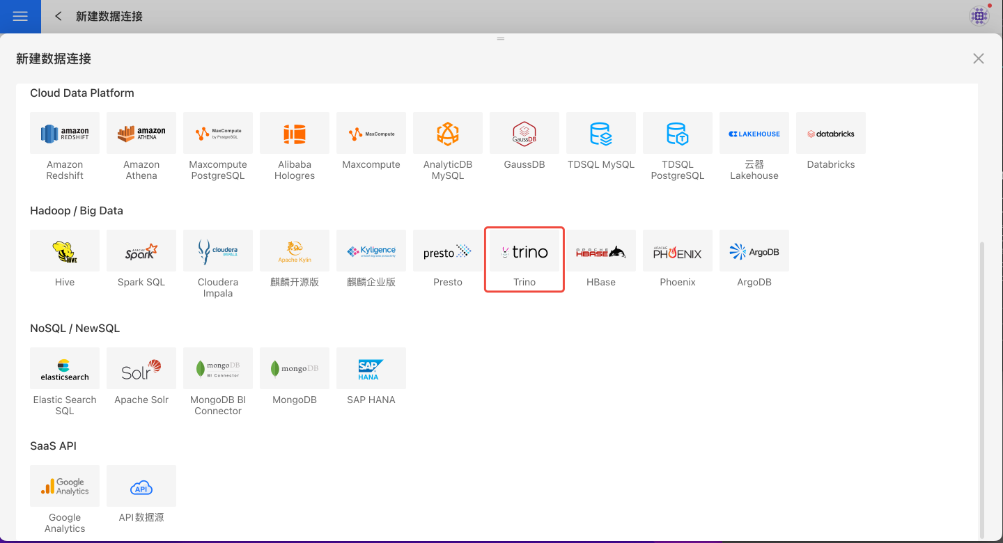 请参照如下步骤连接 Trino 数据源。