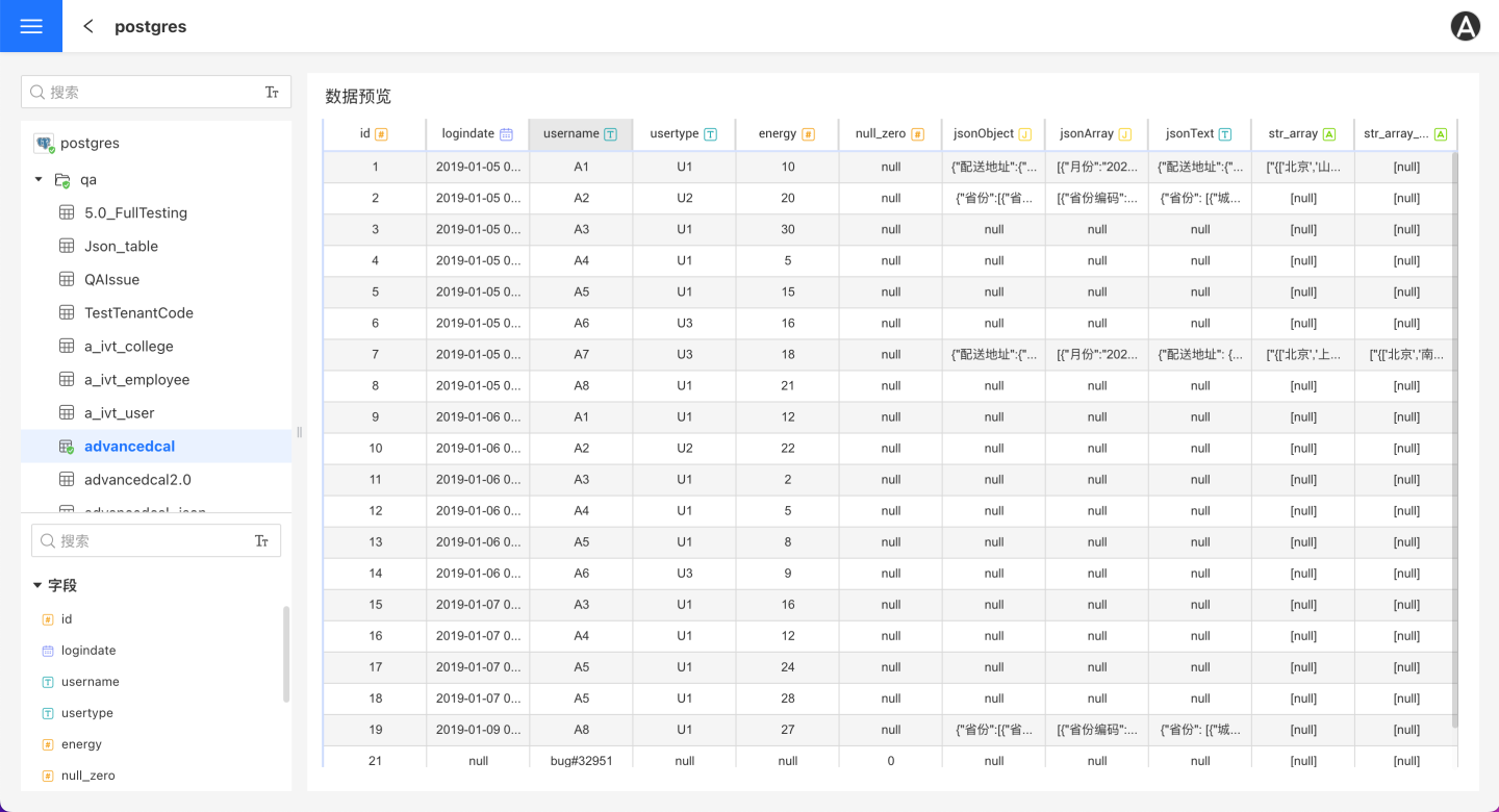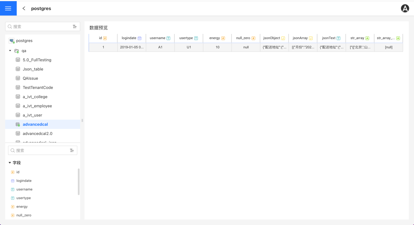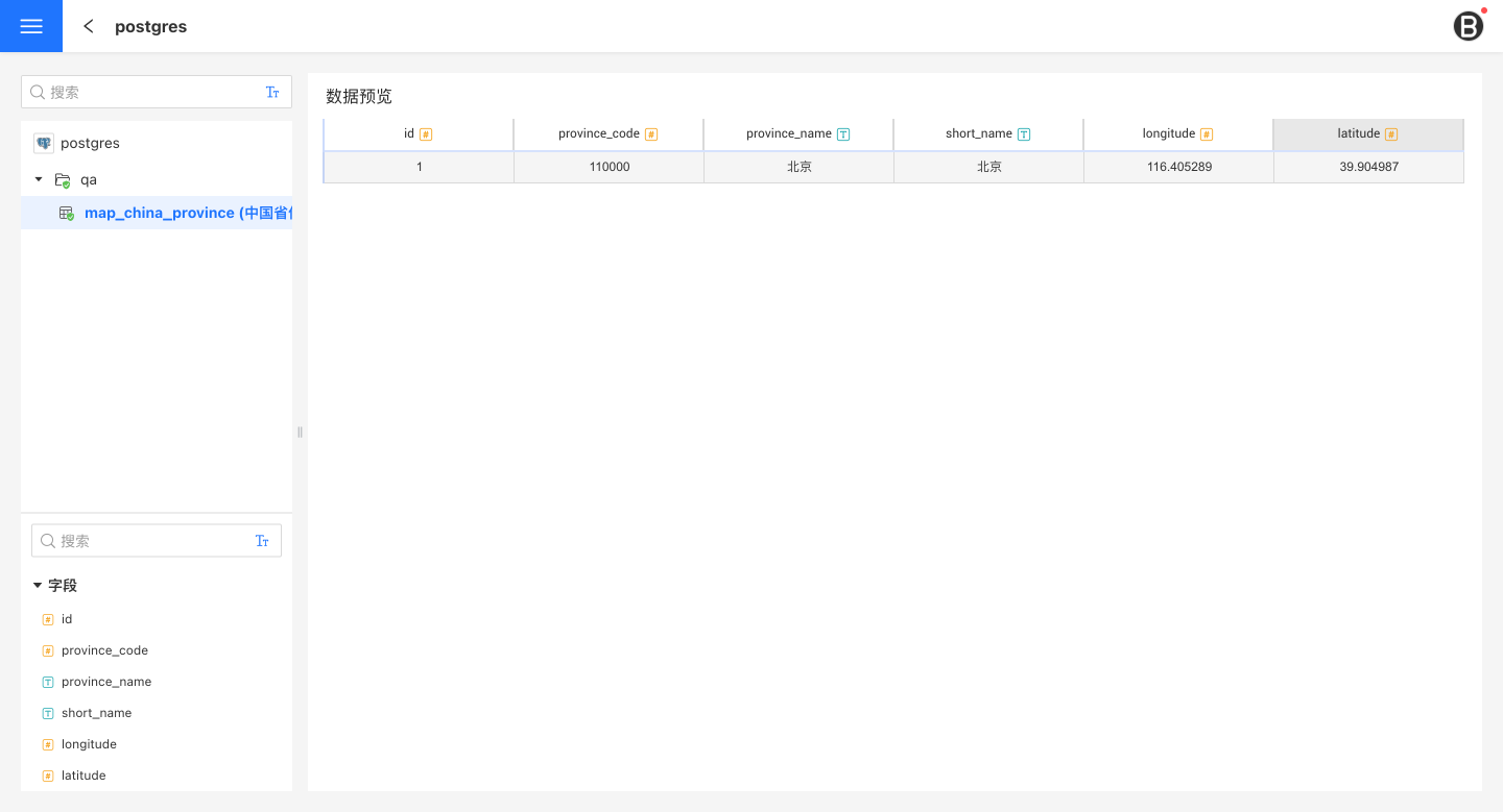 用户在数据预览处可以查看所选中表的数据。