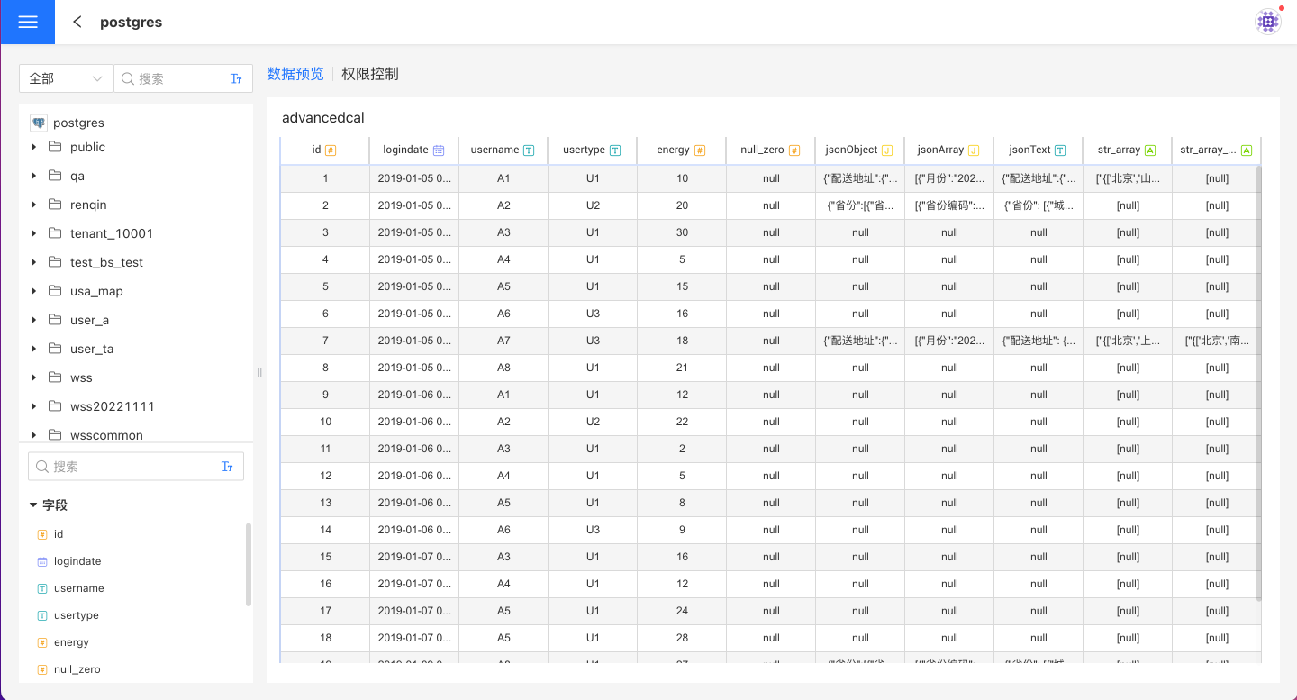 数据连接中 owner 可以查看自己创建的数据连接中表的所有数据。