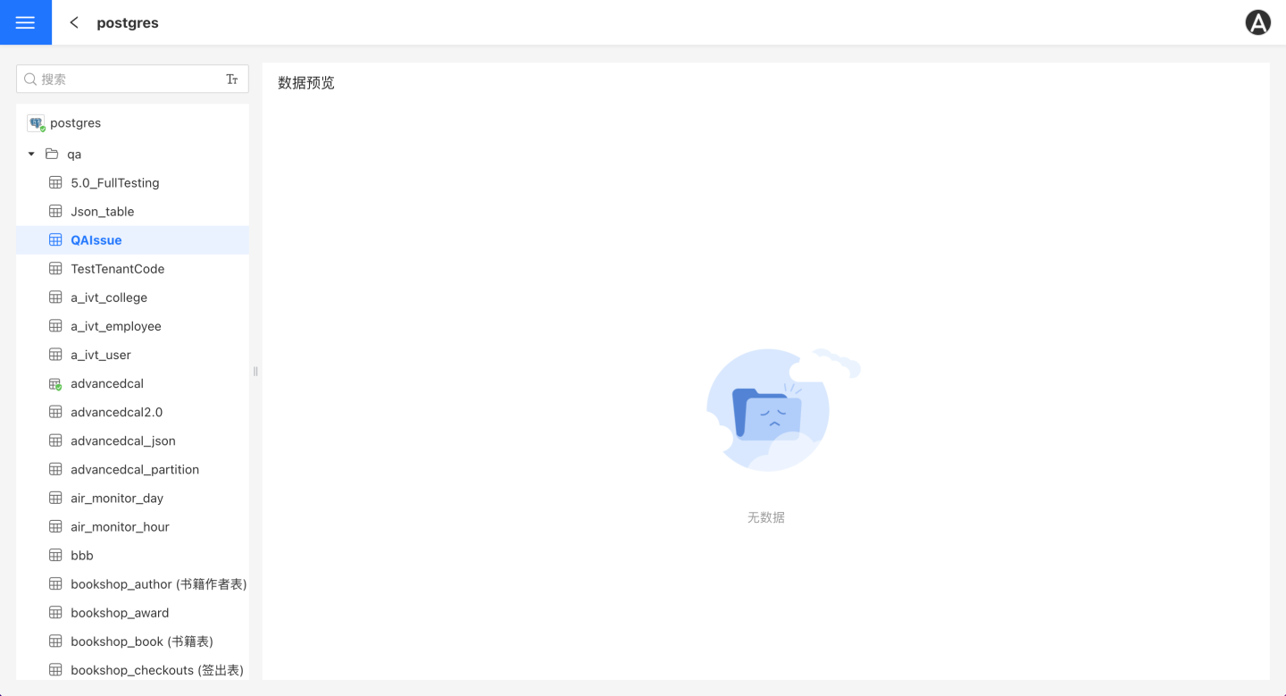 搜索默认从该连接的全部表中进行筛选,下方列出连接中所有目录,展开目录显示连接中所有表。在搜索框中输入想要查找的表的名称即可检索出该表。
