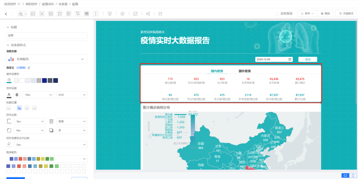 此时我们可以点击右上角的退出容器 icon / 或面包屑中的仪表盘名称。 回到仪表盘预览一下下效果。容器控件内的图表随着容器的移动而整体拖动。