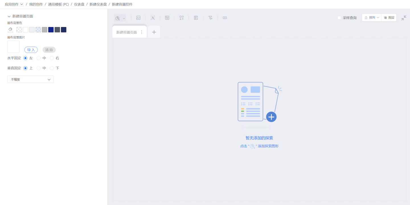 首先我们为容器控件量身定做了一个全新的 icon。 在仪表盘编辑状态,点击顶部工具栏 "容器 icon ",就可以在仪表盘中添加容器控件