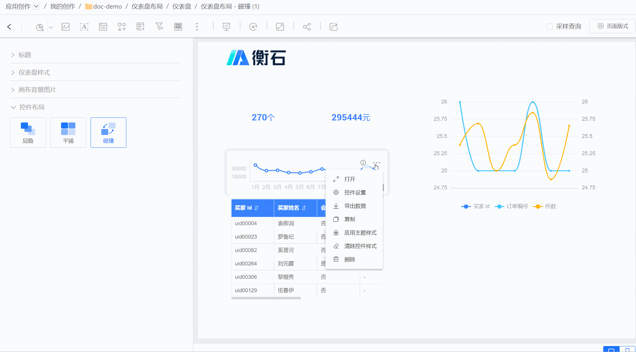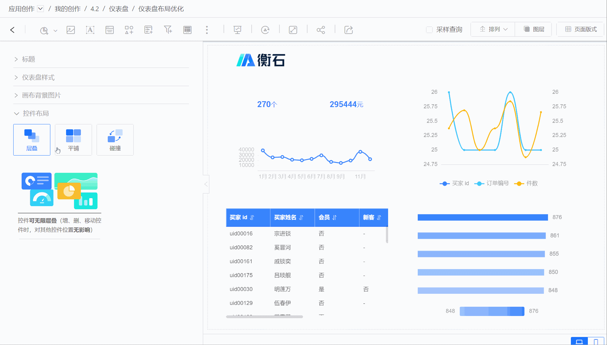 布局是指画布内控件的布局方式,包括层叠、平铺、碰撞三种模式。
