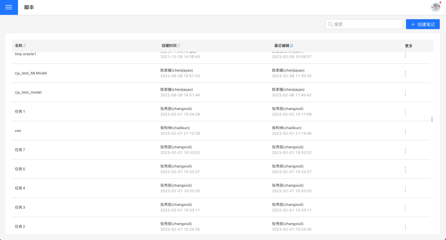 脚本是一个开放空间,对拥有数据管理角色的用户开放。用户可以创建笔记、执行笔记、查看笔记运行结果,也可以编辑和运行其他用户创建的笔记。