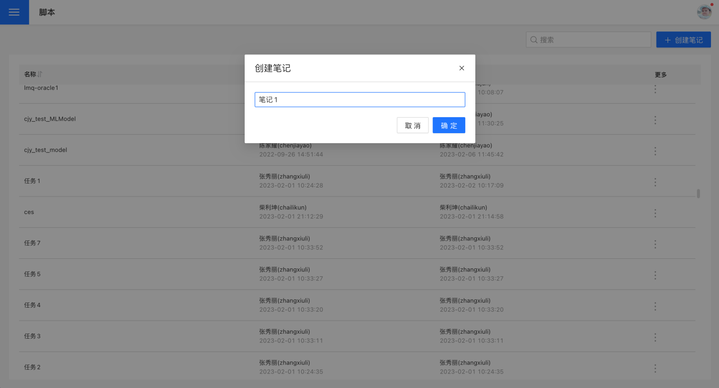 在脚本模块中,点击创建笔记,输入笔记名称,完成笔记创建。