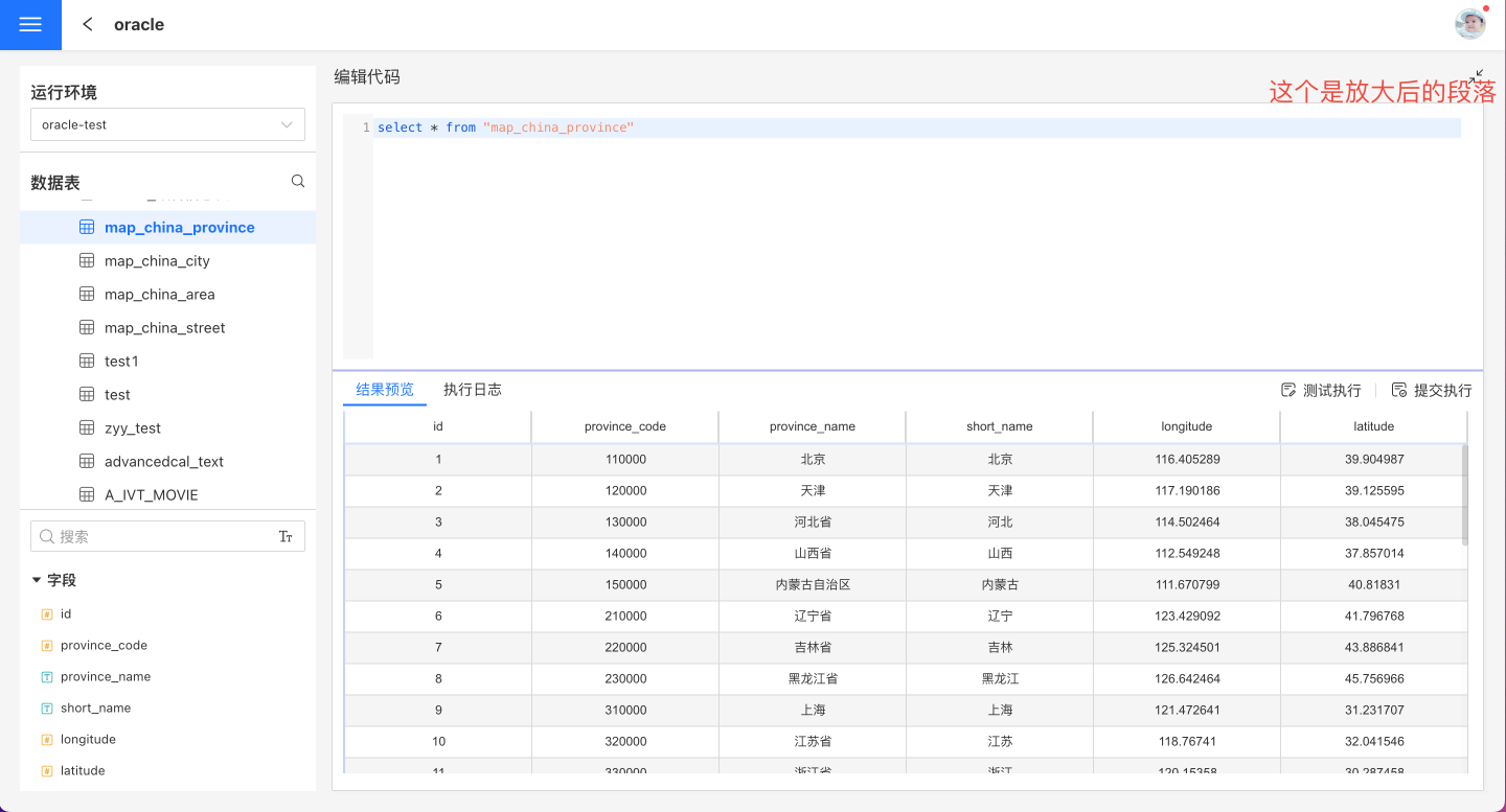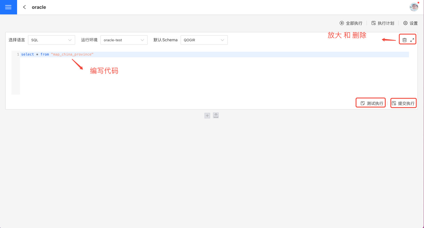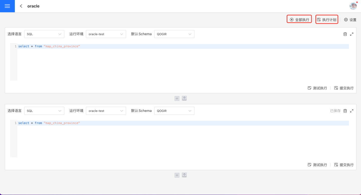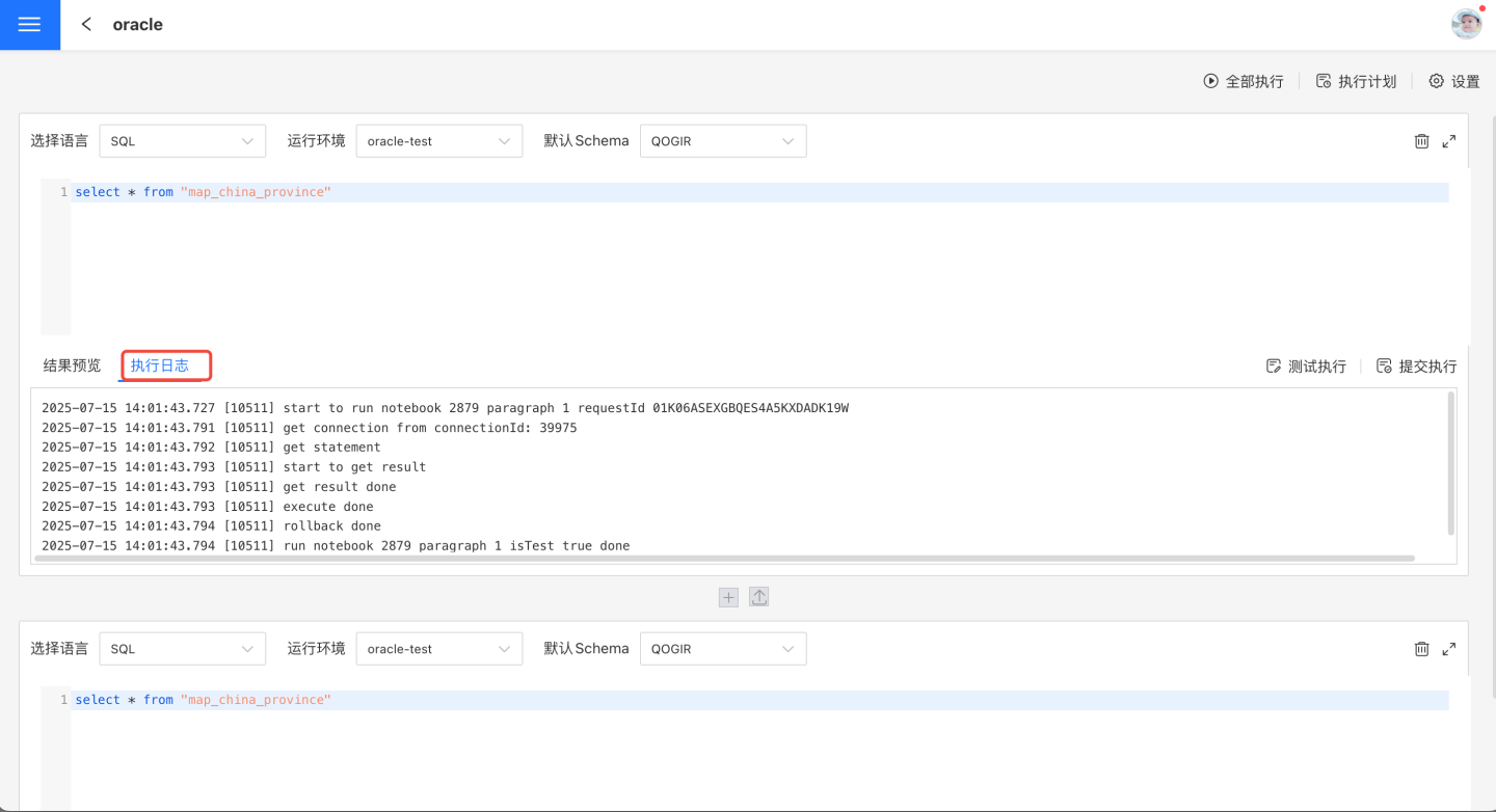 测试执行和提交执行都会展示预览结果和执行日记。