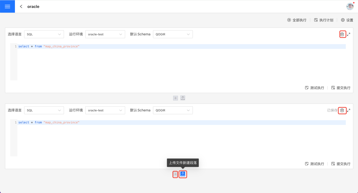 全部执行即手动执行,点击该按钮会执行当前笔记中所有段落,执行结果会提交到数据库中。