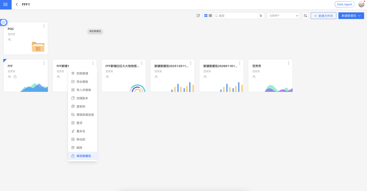 为了保障核心数据资产的稳定性,防止在关键业务周期内发生误操作,我们新增了数据包锁定功能。数据包管理者可以对负责的数据包执行"锁定"操作。锁定后,该数据包进入保护状态,所有内部资源(如数据集、数据模型等)均变为只读状态,任何用户(包括其他管理者)均无法进行编辑或删除。