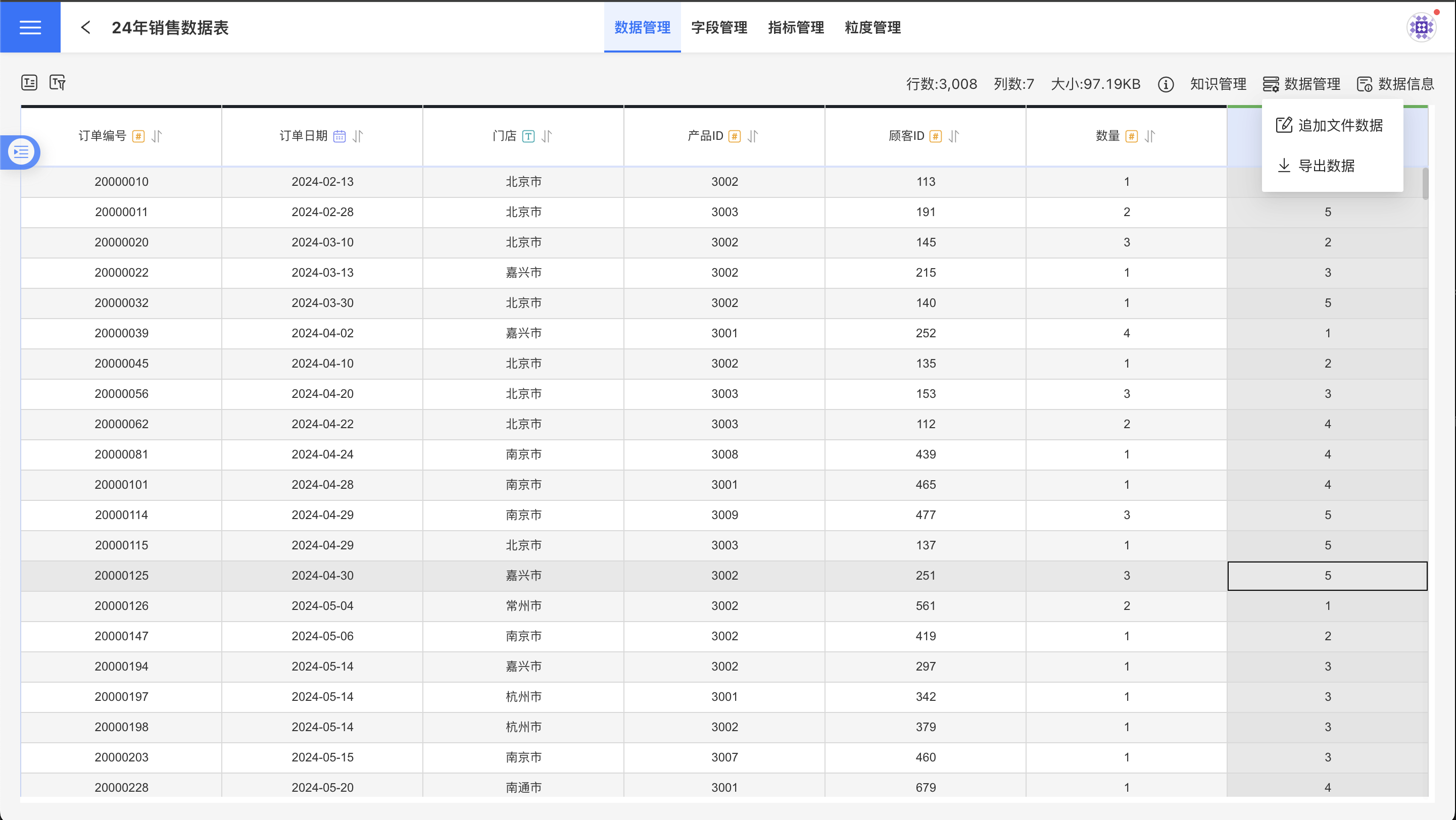 文件类型的数据集,数据管理菜单提供了追加文件数据和导出数据的功能。导出数据功能是把数据集的数据导出成 excel 表格。