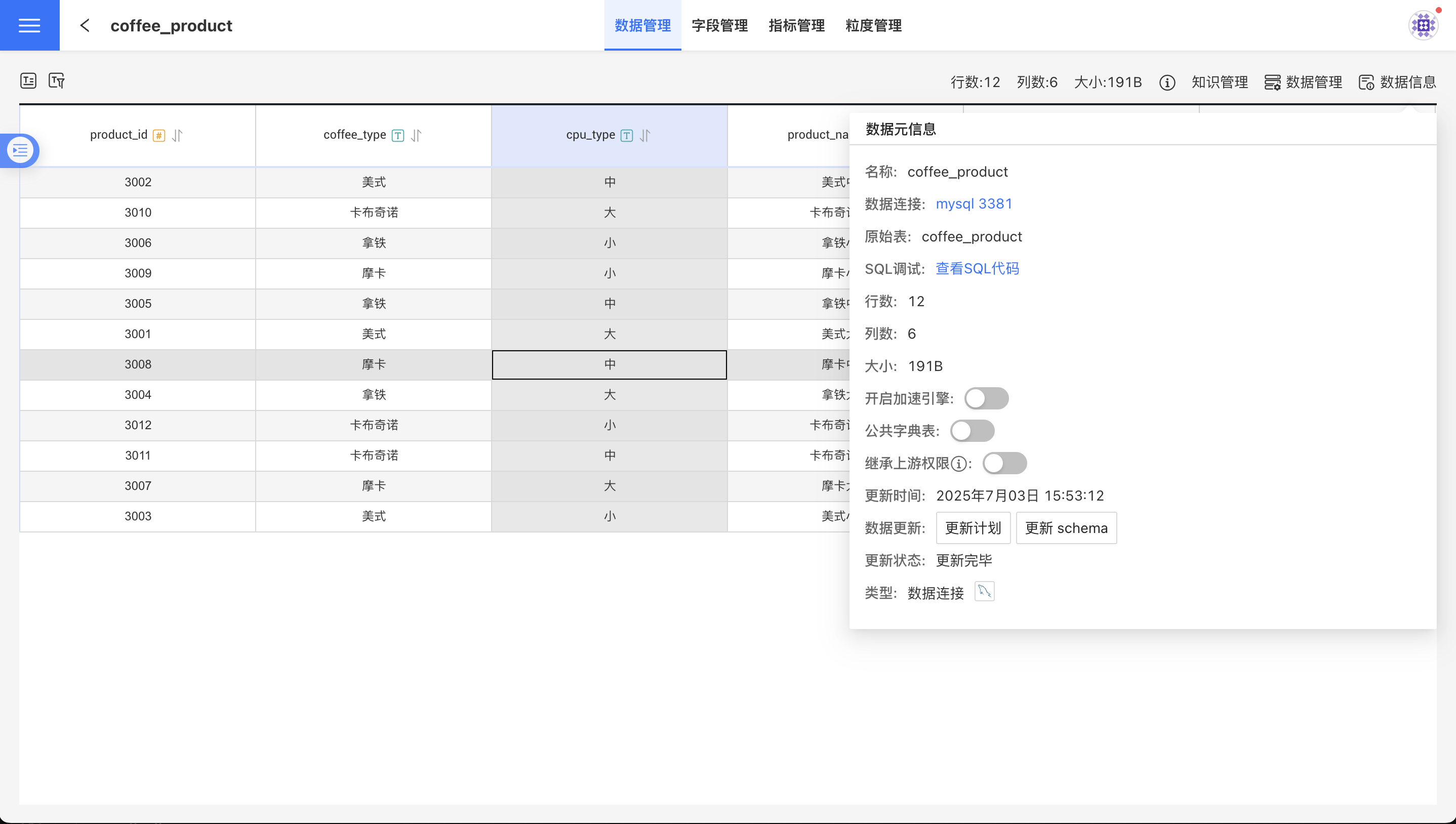 数据信息里面展示了数据元信息,包括: