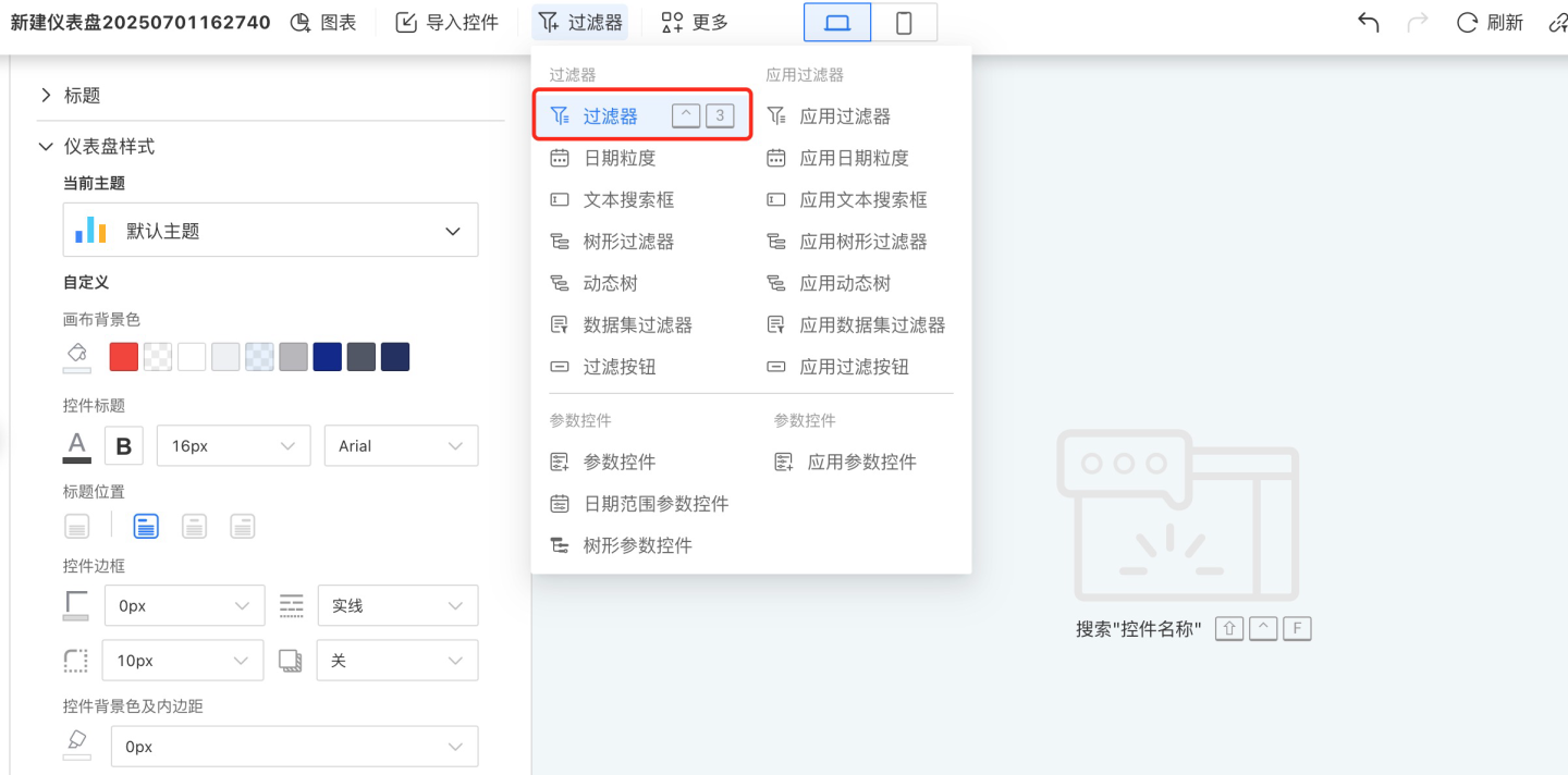 在仪表盘中添加数字过滤器。
